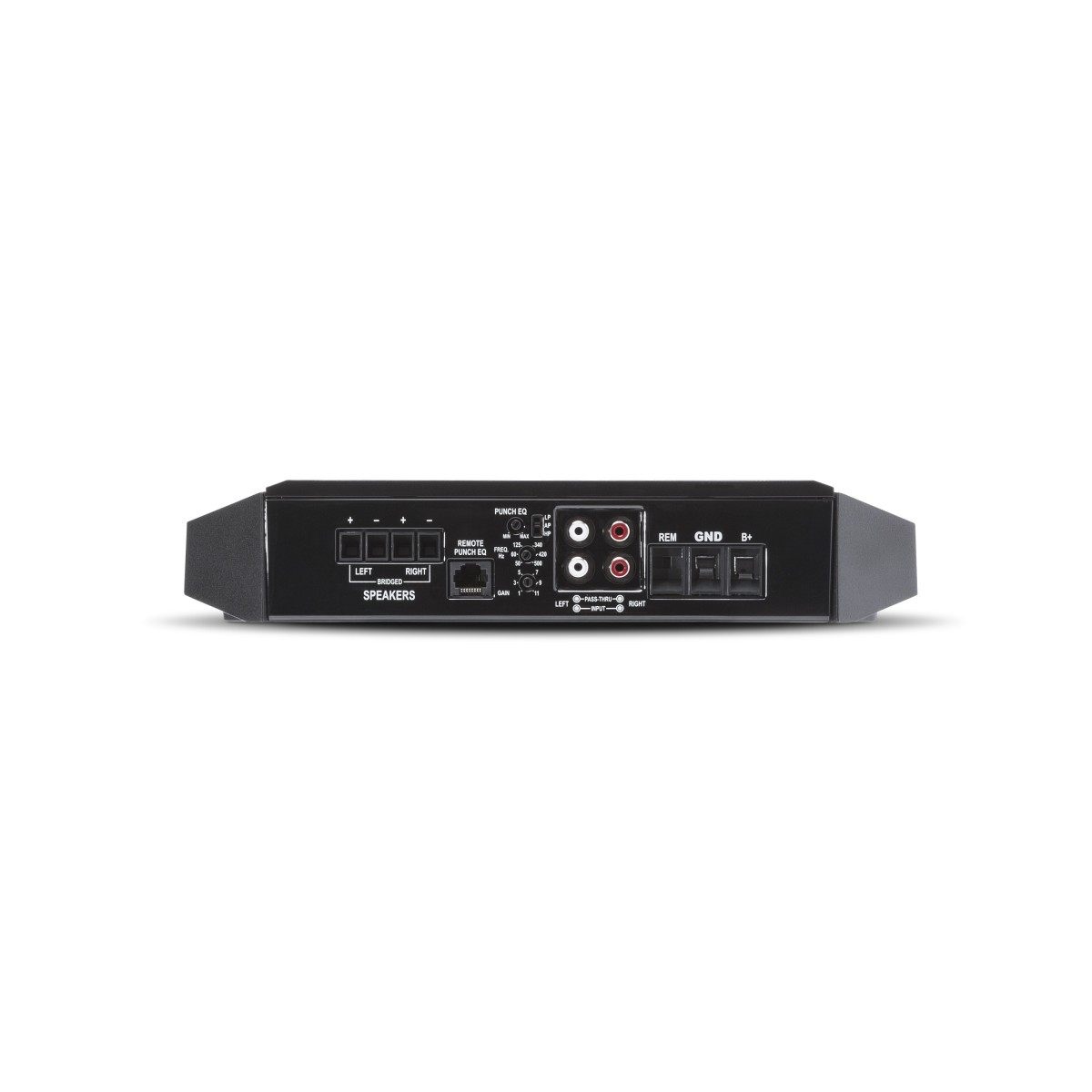 | Дистанционно управление, включено в комплектаНякои модели усилватели имат в комплекта и кабелни дистанционни управления, които от едната страна се включват в усилвателя, а от другата имате потенциометър, който можете да поставите където пожелаете в кабината. Обичайното място за поставяне на дистанционното е под волана. Предимството е регулирането на мощността, съответно на силата на звука, в зависимост от условията на шофиране и настроението на пътниците в автомобила. | Не |