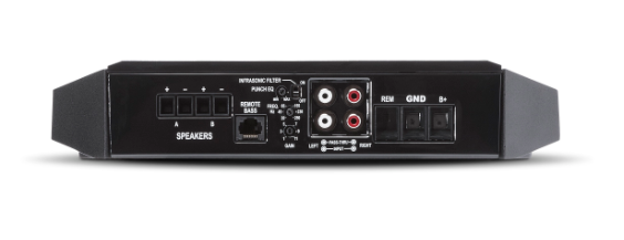 | Дистанционно управление, включено в комплектаНякои модели усилватели имат в комплекта и кабелни дистанционни управления, които от едната страна се включват в усилвателя, а от другата имате потенциометър, който можете да поставите където пожелаете в кабината. Обичайното място за поставяне на дистанционното е под волана. Предимството е регулирането на мощността, съответно на силата на звука, в зависимост от условията на шофиране и настроението на пътниците в автомобила. | Не |