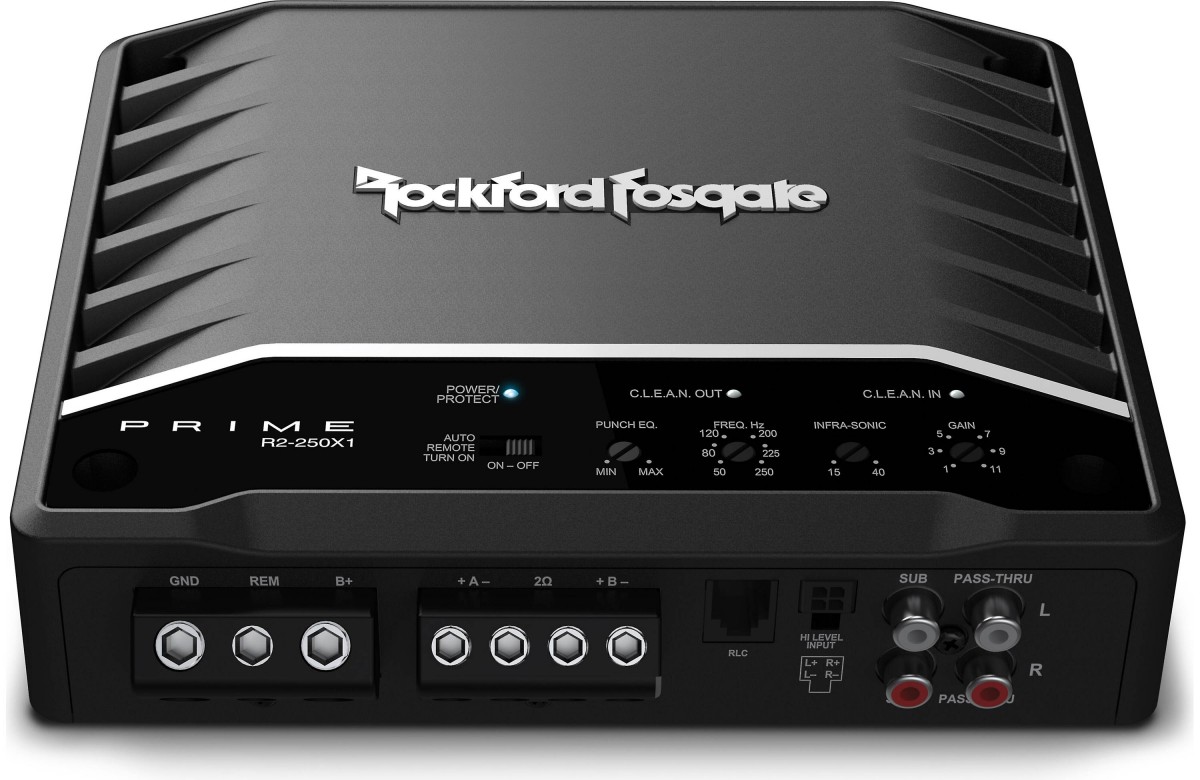 R2-250X1 е 250-ватов усилвател клас D, който може да работи при 4 Ω или 2 Ω. Този усилвател е изключително ефективен благодарение на технологията клас D, която намалява натоварването върху електрическата система на автомобила. Усилвателят също така включва C.L.E.A.N. вериги, които ще ви помогнат да настроите нивото на усилване, система за захранване P.O.W.E.R., която генерира повече енергия с увеличаване на напрежението, и вграден еквалайзер Punch, който коригира акустични недостатъци и добавя до тройно по-мощни баси. Перфектен за субуфъри, променливият инфра-низкочестотен филтър и дистанционното управление на нивото ви позволяват да настроите басите до желаното ниво за музиката. Моделите усилватели Prime R2 са разработени за автомобилни аудио фенове, които искат надежден усилвател на достъпна цена. Усилвателите Rockford Fosgate са световно известни с това, че са „подадени под номинал“, лесно превишават всички спецификации и, което е най-важно, генерират повече енергия от посочените стойности. Тези поколения усилватели от серията Prime са също проектирани за лесно настройване и конфигуриране, така че са идеални за използване с фабрични аудио системи.