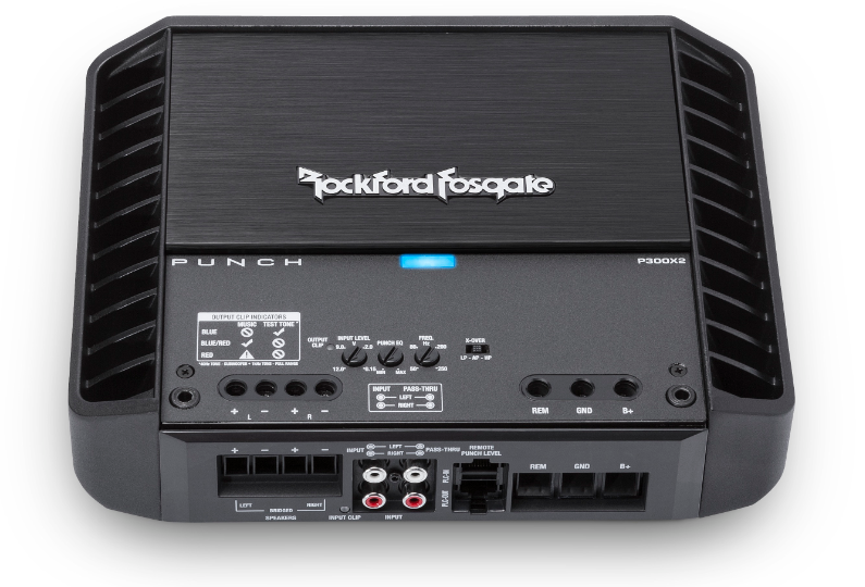 Усилвателят P300X2 е идеалният избор, ако трябва да захранвате няколко коаксиални говорителя, компонентни говорители или отделен субуфър. Усилвателят може да се използва както в моно, така и в стерео режим, но за всеки говорител трябва да се използва пасивен кросоувър (не е включен в комплекта). Моделът P300X2 предлага с доказаната технология Punch истинската мощност на Rockford Fosgate, като освен това е много компактен и гъвкав и може да се адаптира към почти всички средни аудиосистеми.
