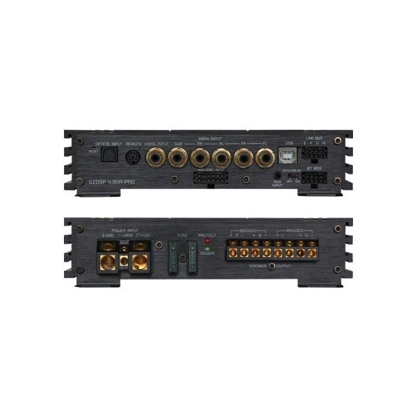 Средата във автомобила не винаги предлага благоприятни условия и подходящи монтажни позиции за говорителите. Неточната възпроизведба на звука обаче може да бъде коригирана чрез DSP технологии. Предимството на DSP технологията е налично и като вградена функция в някои усилватели. Интегрирана в Plug & Play усилвател с ISO свързващ комплект или като универсален 4-канален усилвател с 8-канален DSP и 4-канален предварителен изход. Ground Zero GZDSP 4.80A-PRO е 4-канален усилвател с интегриран 8-канален DSP, 6-канален вход на високо ниво / 5-канален RCA вход, USB връзка, цифров и AUX вход и функция за автоматично включване.Основни характеристики