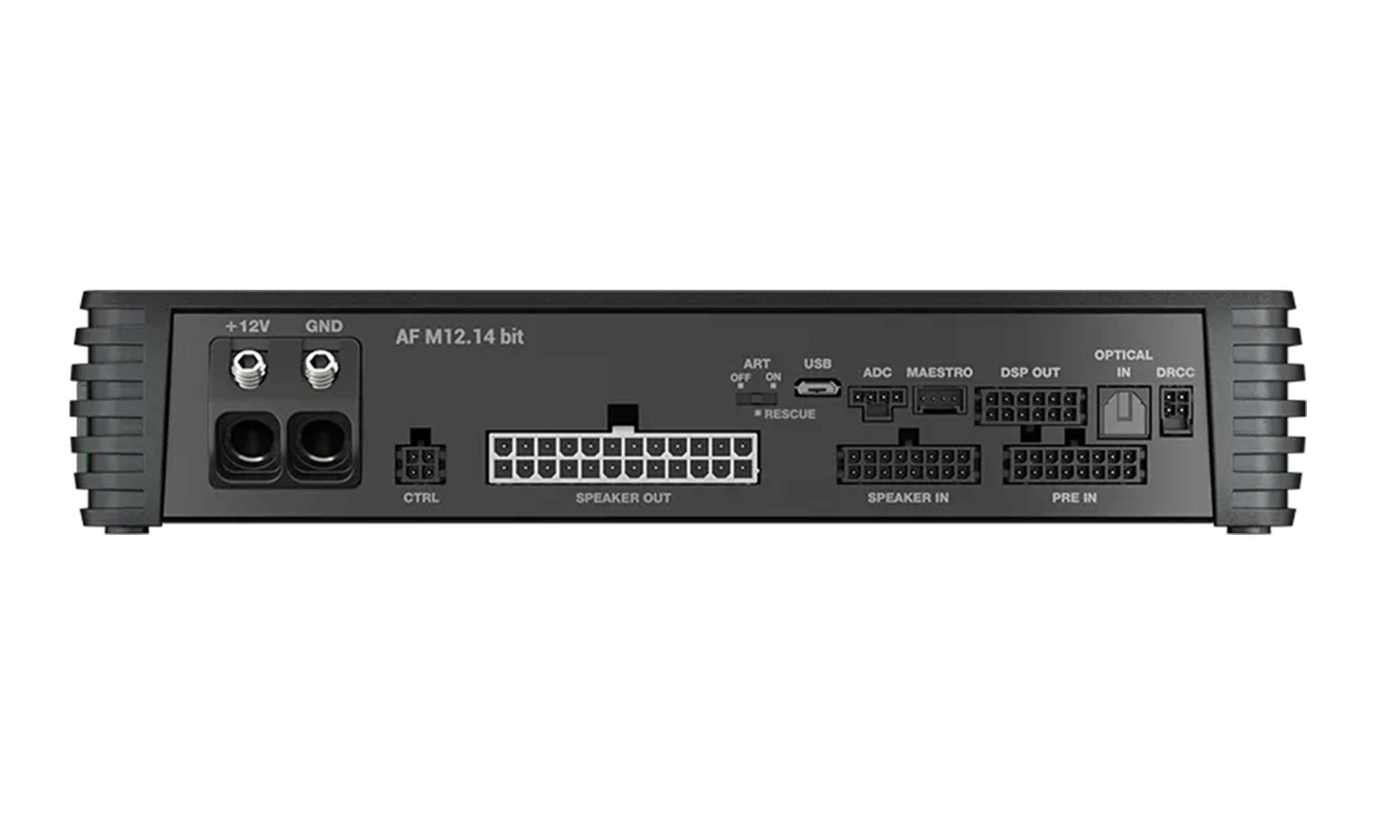 Audison AF C8.14 bit от най-новото поколение усилватели Forza от 2022 г. може да се похвали с дванадесет изключително верни усилени канала 60 W x 12 @ 4 Ω, 90 W x 12 @ 2 Ω с аудиофилски звук благодарение на най-новото поколение технология Audison D-Class. По-високата честота на превключване, по-стръмното филтриране и компоненти с по-висока толерантност предоставят звук, който надхвърля очакванията за клас D – в удивително компактна опаковка! Това се комбинира с нативен DSP, работещ при 24 bit/96 kHz, разширяващ звуковия обхват до 40 kHz и постигайки желаната сертификация High-Resolution. Усилвателят може да бъде и мостов, което позволява гъвкава и мощна конфигурация. Поддръжката на функцията Absolute Volume Audison B-CON гарантира максимална битова дълбочина, дори при безжично свързване.