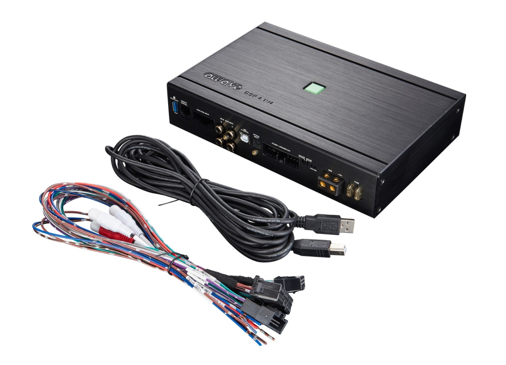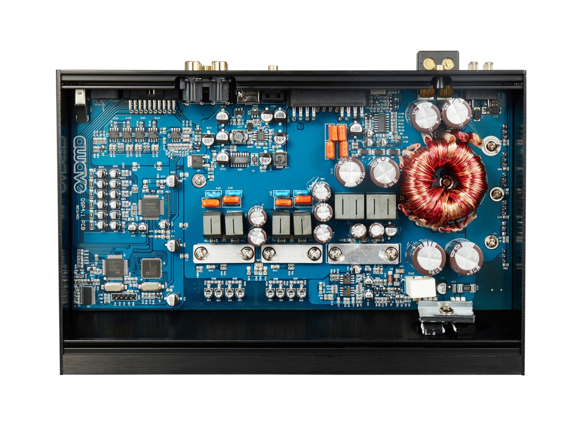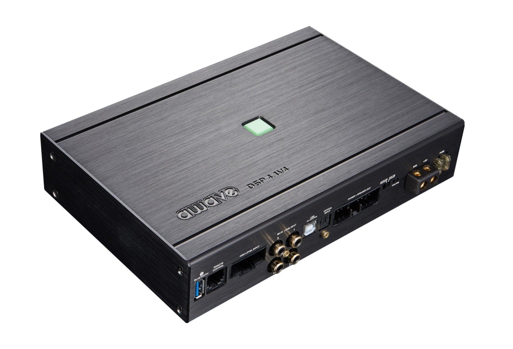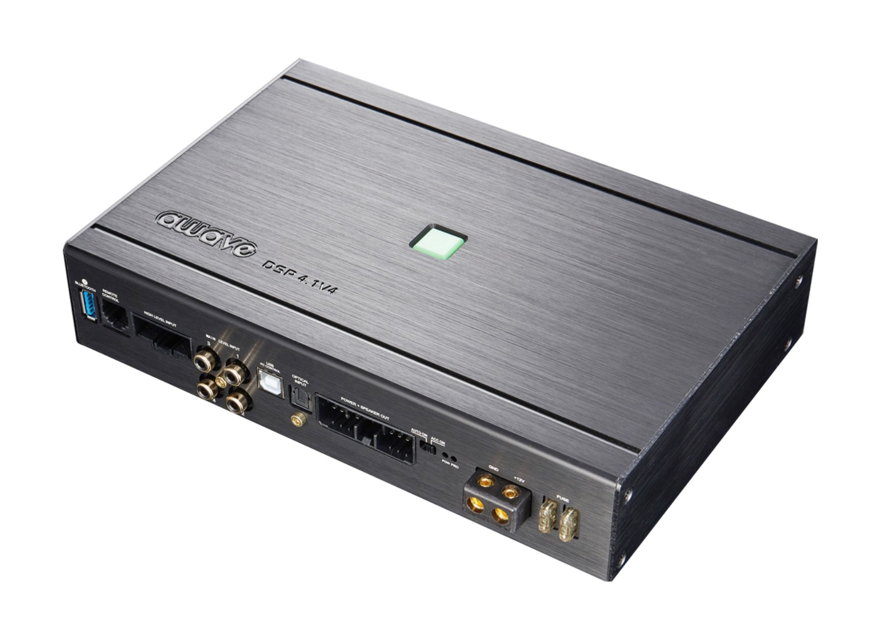 Awave DSP-4.1v4 е петканален усилвател с вграден DSP процесор, който комбинира качествен звук, усъвършенстван софтуер на DSP процесора и лесна интеграция с фабричните системи. Усилвателят предлага висока мощност 4 x 75 + 1 x 200 W RMS и богата свързаност. Тя включва 6 входа с високо ниво за удобно свързване към оригинални автомобилни плейъри, 2 RCA входа или оптичен и коаксиален вход. Благодарение на 2 RCA конектора на изхода и 6-те обработваеми канала на DSP процесора може да се свърже и управлява допълнителен усилвател. DSP процесорът разполага с висококачествен чип ADAU, А/D и D/A преобразуватели на сигнала AKM и честота на семплиране 192 kHz. В софтуера на DSP процесора може интуитивно да се настроят усилване, времеви корекции, пасови филтри, филтри, 31-лентов параметричен еквалайзер и други важни функции. Към усилвателя също е възможно да се добави дистанционно управление за настройка на общата сила на звука, силата на субуфера и избор на пресет. Усилвателят е съвместим с Hi-res файлове благодарение на разширената честотна характеристика. Модерната цифрова платформа гарантира висока ефективност от 84%, достатъчна мощност за средно напреднали говорители и много компактни размери.