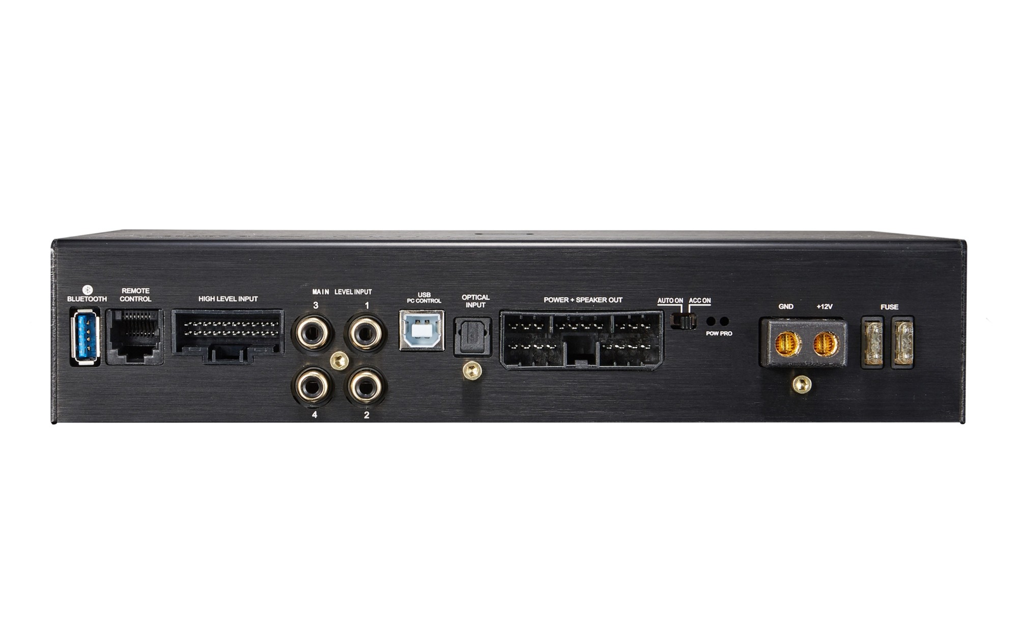 - Усилвател клас D с мощност 4 x 75 + 1 x 200 W RMS (4 Ω) и 84% ефективност.