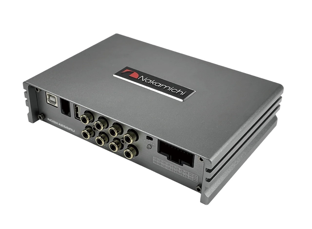 Nakamichi NDSK4265AU е 6-канален DSP процесор с интегриран четириканален усилвател с мощност 4 x 30 W RMS. Този продукт изпъква с лесната възможност за ъпгрейд на фабричното автомобилно радио, увеличаване на мощността за говорителите и детайлна настройка на звука чрез софтуера на DSP процесора. Благодарение на широките възможности за настройка той ще повиши звука и мощността спрямо фабричната основна единица до съвсем ново ниво. При необходимост можете да използвате Nakamichi NDSK4165AU като пълноценен DSP процесор и да допълните системата с по-мощен усилвател. Nakamichi при модела NDSK4165AU отлично демонстрира фокуса си върху високото качество с голям акцент върху лесното управление. Много интуитивният софтуер на DSP процесора може да бъде настроен от почти всеки сръчен потребител и дори има мобилно приложение за лесна настройка през смартфон. Предимство е и възможността напълно да се заобиколи звуково некачествената фабрична основна единица и благодарение на интегрирания Bluetooth модул да се стриймва музика директно към усилвателя. Възможност за свързване на дистанционно управление с музикален плейър и функция за смяна на композициите. Шасито на усилвателя от браширана алуминиева сплав и отличната изработка подчертават ексклузивността на този продукт.Основни характеристики на Nakamichi NDSK4265AU