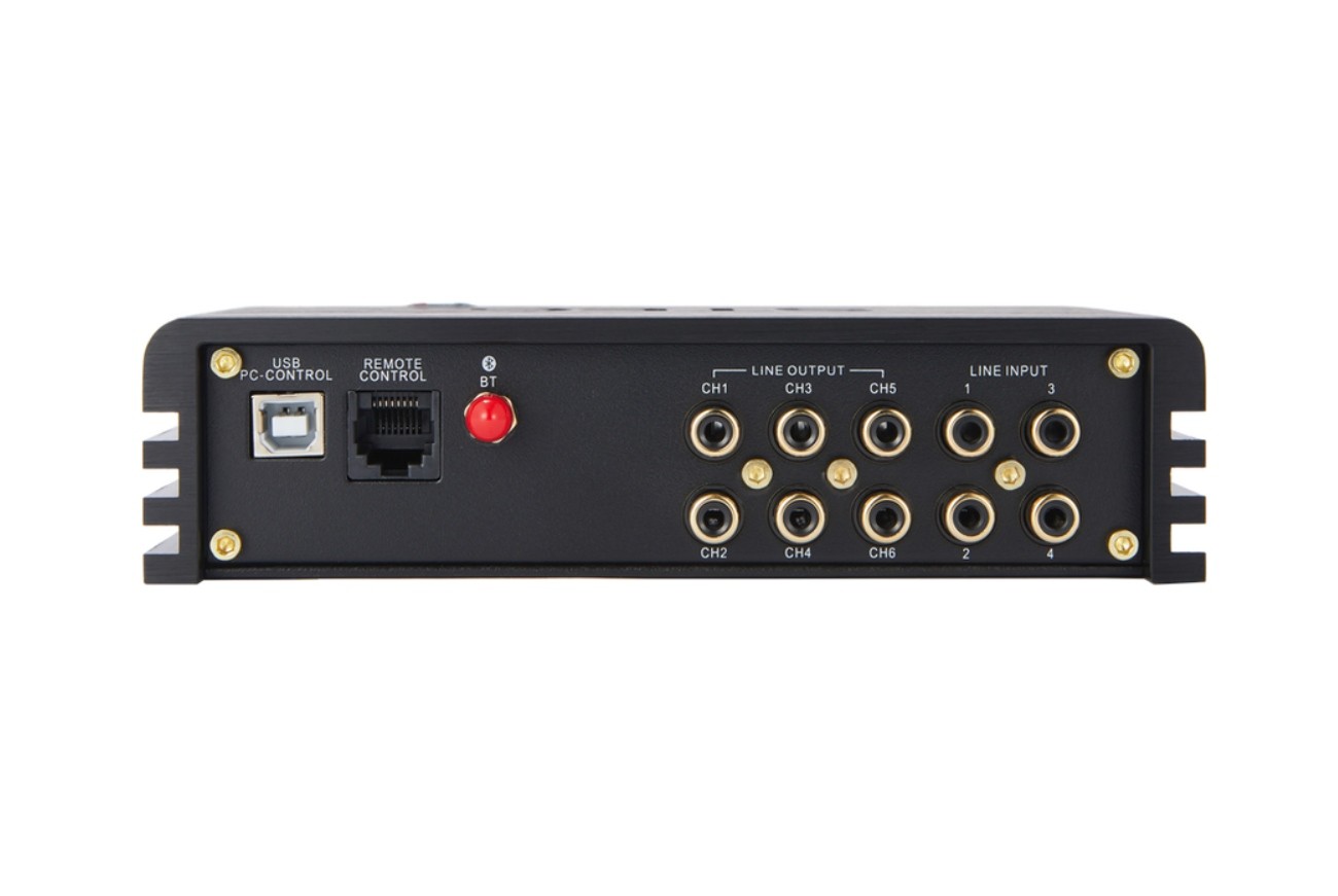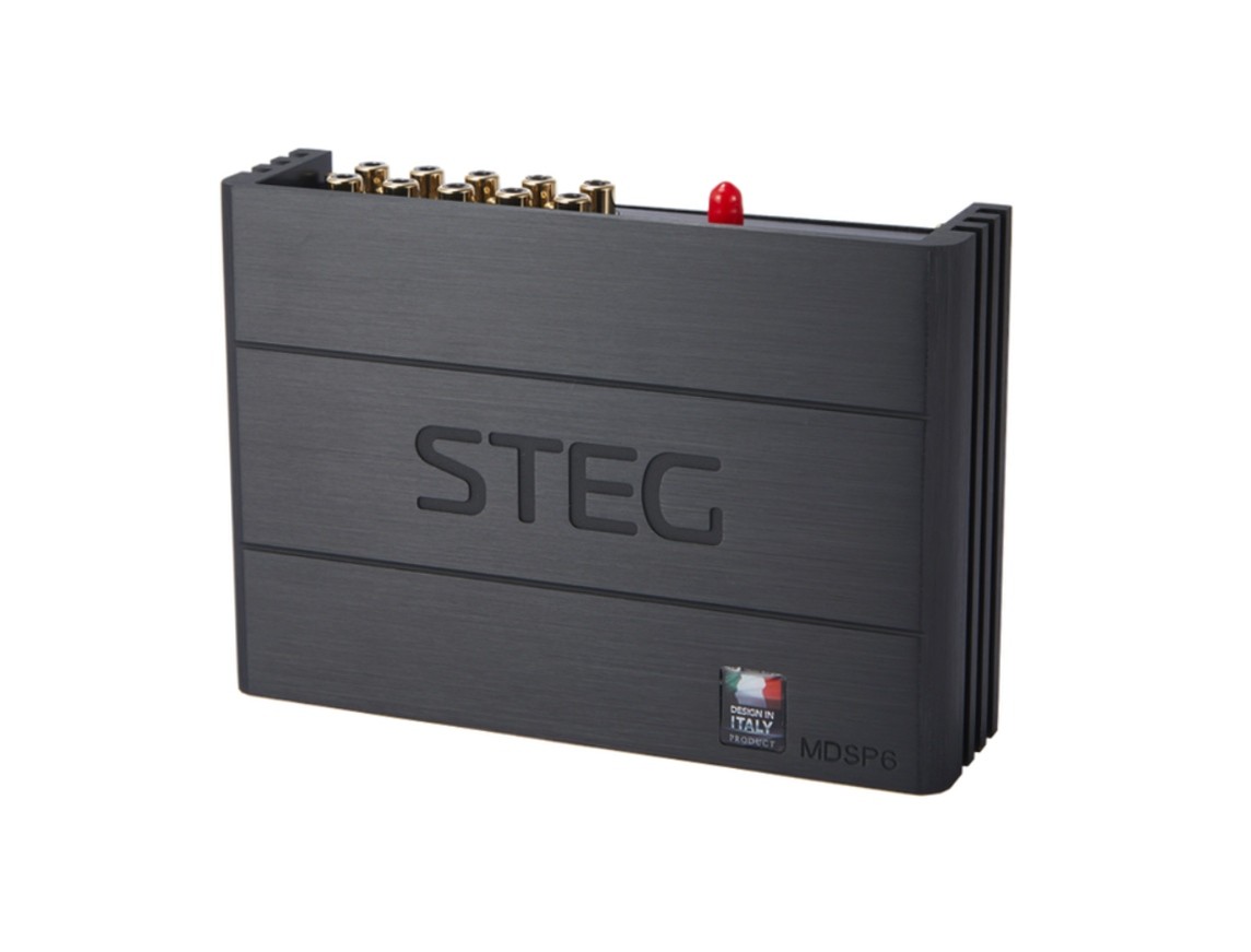 Новият Steg MDSP 6 е многофункционален усилвател с миниатюрни размери, който не само осигурява достатъчна мощност и динамика на озвучаване, но и идва с всички предпоставки за лесна интеграция във вашето превозно средство. С шестте си входа за висок сигнал и оптичен цифров вход, усилвателят е прекрасно подготвен за безпроблемно приспособяване към съществуващи многоканални фабрични звукови системи. MDSP 6 разполага със собствена 32-битова платформа, която не само изключително бързо поема всички контролни задачи, но и управлява множество аудио функции. Например са имплементирани фантастични звукови ефекти като Augmented Bass Processing и Real Center. Въпреки широкия набор от функции и изходната мощност 4 x 35 W RMS при 4 ома, MDSP 6 идва в много компактен дизайн, което позволява лесен монтаж дори в ограничени пространства. Мощните функции за перфектно звуково преживяване могат разбира се лесно да се конфигурират чрез новия професионален и изключително интуитивен софтуер. Многобройните възможности за настройка изпълняват всички желания и гарантират изключително прецизно настройване на звука дори за сложни конфигурации на системата.| Каталожен номер | MDSP 6 |