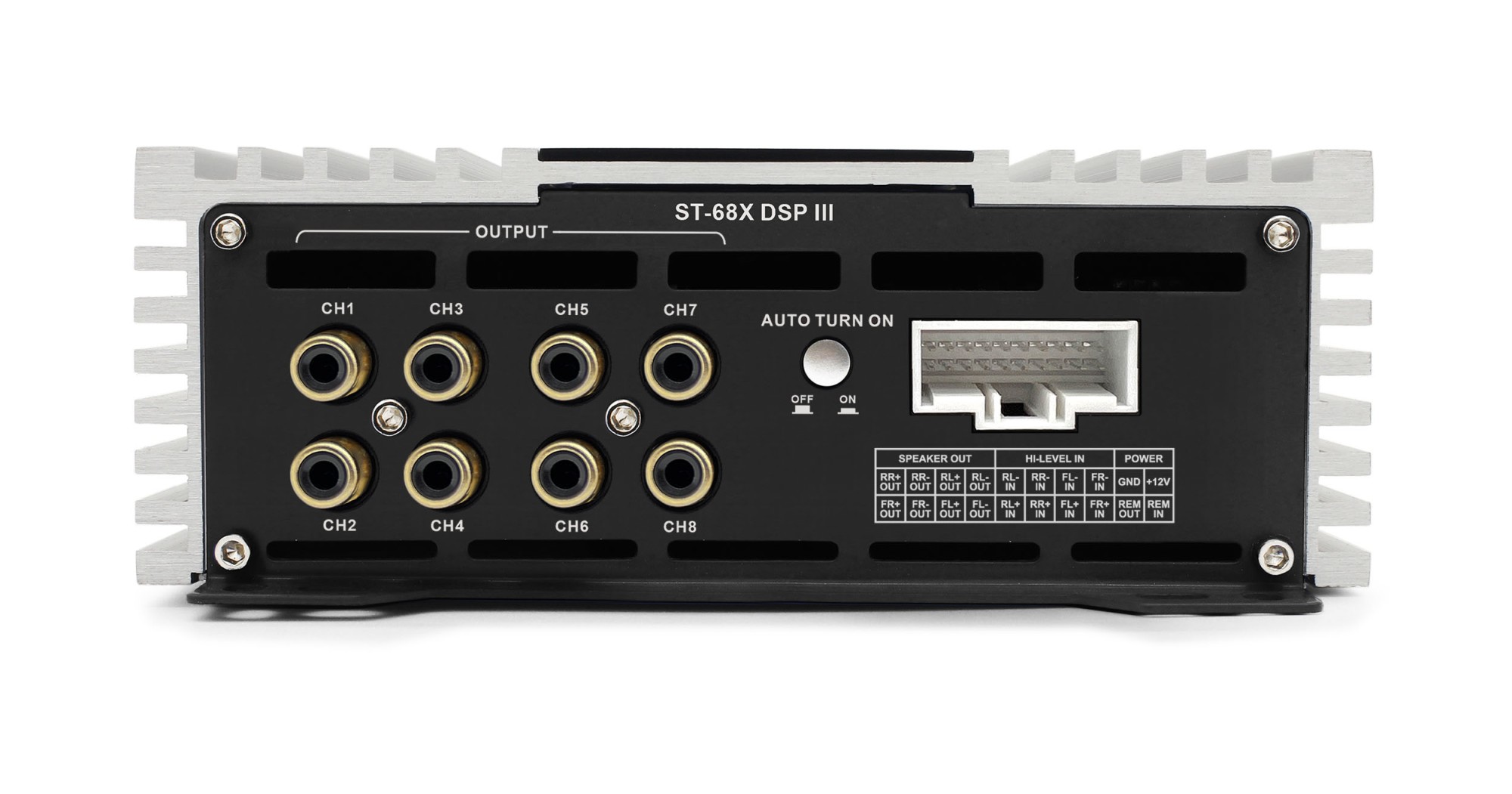 - 4-канален усилвател клас AB с 8-канален DSP процесор.