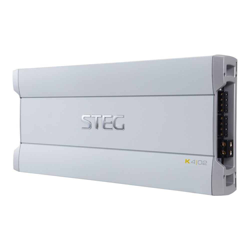 Обновените усилватели от серия K имат огромна мощност. Те разполагат с изцяло алуминиево тяло с интегрирана активна система за охлаждане - елегантни и същевременно изтънчени. Както е характерно за италианския производител STEG, компонентите са изградени от качествени материали и благодарение на строги изпитания под натоварване директно в завода притежават най-висока надеждност. Те са изключително универсални и включват широка гама функции, които могат да се свързват помежду си и да конфигурират сложни звукови системи. Интересна е функцията SERIALPOWER - стерео моделите могат да се свържат помежду си и да удвоят мощността. Съдържат микропроцесор, който управлява комплексна защитна система. Чрез порта STEGLINK те могат да комуникират с личен компютър.