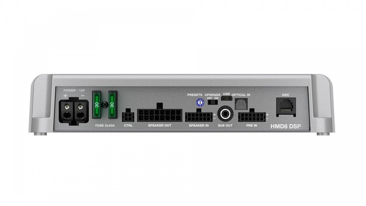 HMD8 DSP, захранван от технологията Hertz Marine DSP, носи нови наслади от слушането по време на навигация. DSP с потребителски приятелски интерфейс прави инсталационния процес детска игра и позволява да се използва пълният потенциал на високоговорителната система. Удивителната мощност 8 x 85 W или 4 x 260 W (RMS @ 4 Ω) дава на HMD8 DSP способността с резерв да управлява цяла високоговорителна система, генерираща множество кристално чист звук. Дизайнерската философия „Power for the Waves“ се отличава с издръжлив корпус, изработен от екструдиран алуминий, с антикорозионно обработена платка, която осигурява години удоволствие от слушане при плаване по открити водни площи.За марката