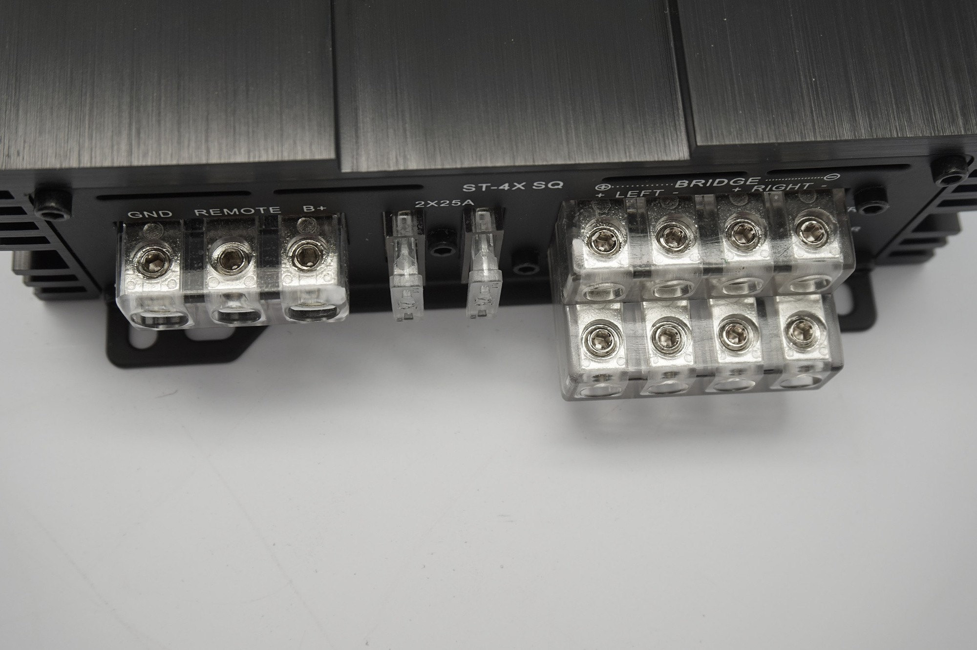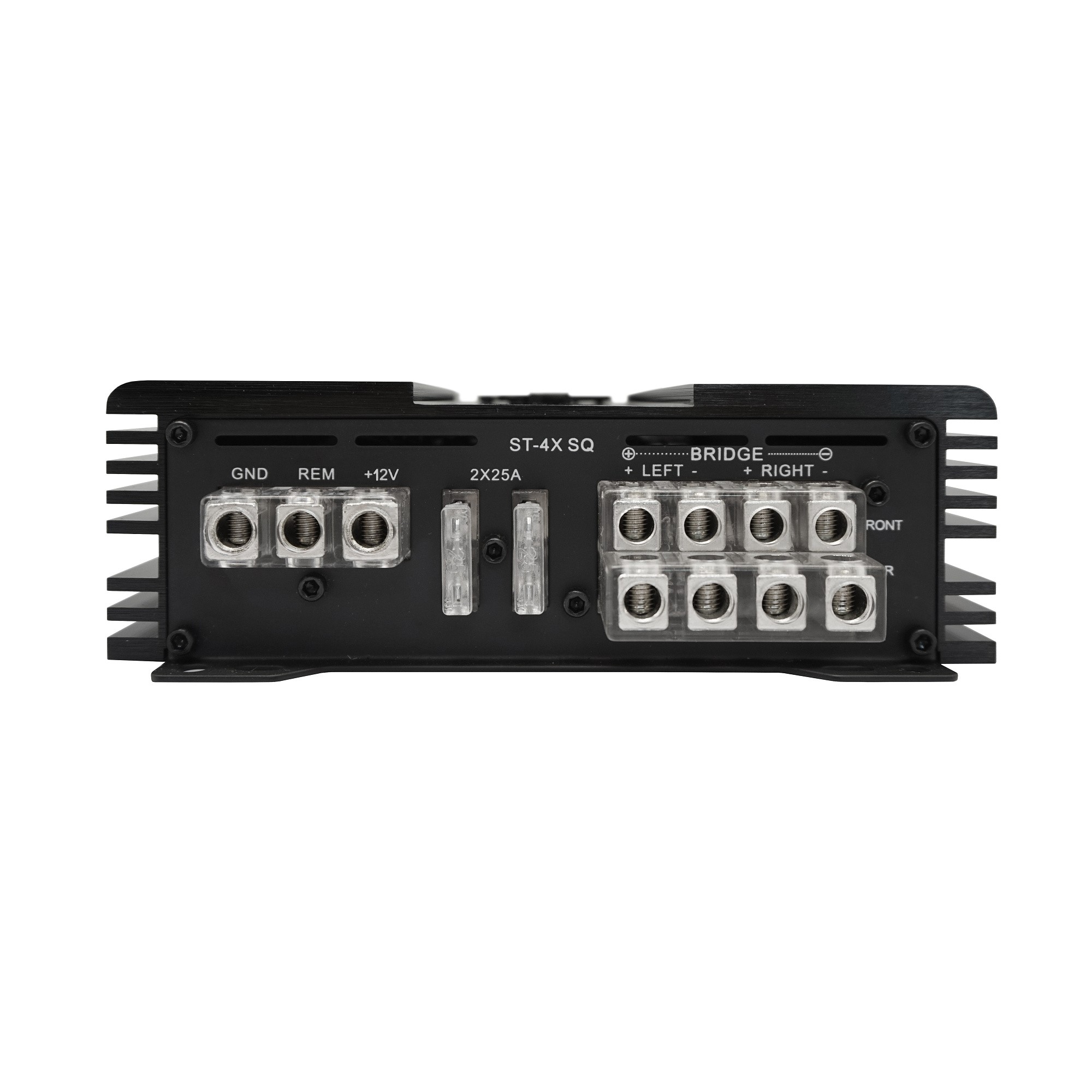 Серията усилватели Studio-X на Zapco е създадена специално за съвременния автомобилен аудио пазар. Компактното шаси Studio-X позволява лесен монтаж във всеки автомобил и благодарение на съвременния ъглов дизайн в черен цвят усилвателите изглеждат отлично във всяка инсталация. Усилвателите от серията ST-X SQ на Zapco са предназначени за клиенти, които ценят по-фините елементи на музиката и са готови да инвестират малко повече в „по-жив“ звук. Вътре в този усилвател, насочен към качеството на звука, ще откриете няколко подобрени компонента, които допринасят за значително по-качествено възпроизвеждане на любимата ви музика. SQ версията предлага по-открит звук и по-точна звукова сцена. При SQ усилвателите са използвани и подобрени RCA конектори в стил Tiffany за стабилна и постоянна предавка на сигнала.
