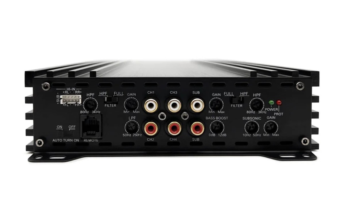 | RMS мощност при 4 ΩRMS мощност при натоварване на високоговорители или субуфер при 4 Ω. RMS мощността е постоянната мощност на усилвателя и е един от най-важните параметри при избор на усилвател. | 4 x 70 + 1 x 250 W |
