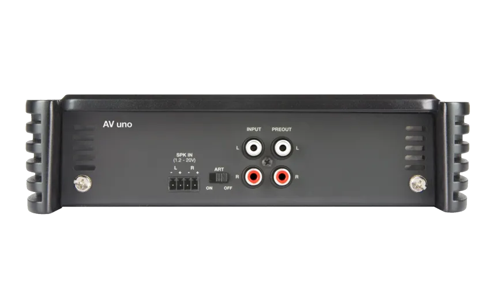 Audison AV uno e usilvatel, sǎderzhash inovativni skhemi, narечeni POD (Power On Demand). AV uno pozvolyava da se kombinirat predimstvata po kasane na kachestvoto na zvuka i zdrǎvinnostta na traditsionnite usilvateli klas AB sus effektivnostta na usilvatelite klas D. AMP (Amplifier Management Processor) postoyanno kontroliра operatsionnata sistema i komunikira s potrебitelya chrez chetiri razlichni tsvetni LED dioda, razpolozheni na gornia panel. ART (Automatic Remote Turn On-Off) pozvolyava avtomatichno vklyuchvane/izklyuchvane, kogato signalat ot iztochnik ne e nalichen. AV uno e mono usilvatel, proektiran za zadvizhvane na subufer, no sushto podhodqsht za visokoizpǎlneni Dual Mono sistemi. AV uno sushto pozvolyava zamyanata na analogovata vhodna platka s digitalna platka (AV bit IN). Moshchnostta, upravlenieto i izkliuchitelnite kraiini stupeni sa sposobni da suzdavat neveroyatni basi i izklyuchitelno kachestvo na muzikalnoto izpulnenie v︢ tseliya chastoten diapazon.