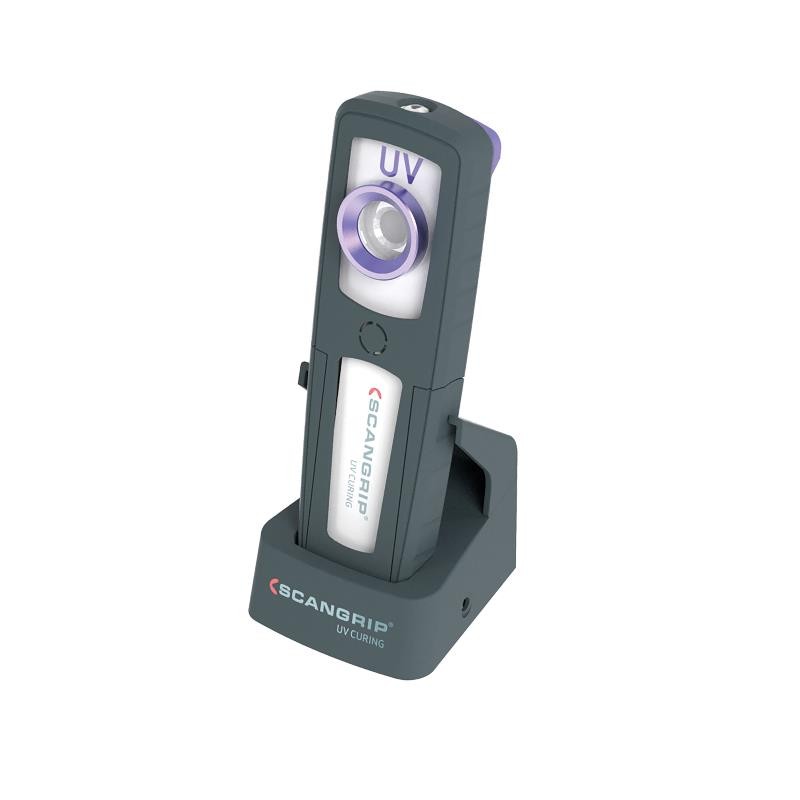Scangrip UV-Light е лесно преносима UV лампа от датската компания Scangrip и е предназначена за малки и средни области на втвърдяване. Тя се доставя с въртяща се здрава кука и вграден магнит. Можете по всяко време да закрепите лампата към метална повърхност и да я насочите точно според вашите нужди! На задната страна също ще намерите практична, здрава и въртяща се закачалка за окачване, например за работен колан. Лампата има много здрава конструкция. Стандартна част е лещата на лампата, която е устойчива на всички видове разтворители! Интелигентният индикатор на батерията ви информира за състоянието на батерията.