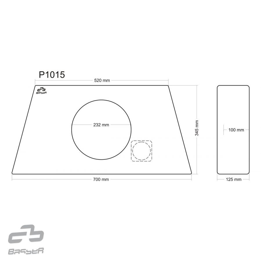 | Размер на отвора за субуферОтвор за съответната диаметрална категория субуфери. За 300 mm субуфер отворът обикновено е около 28,3 см. Монтажните диаметри на субуферите обикновено са стандартизирани, така че няма нужда от промени. | 25 cm (10\") |