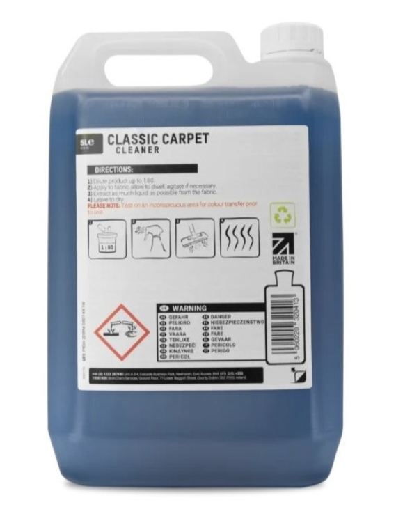 ValetPRO Classic Carpet Cleaner е почистващ препарат за интериорни тъкани и автомобилни тапицерии, който е проектиран да „разрушава“ упоритите замърсявания от тъканта. Това означава, че замърсяванията при почистване лесно се отделят от плата, което подпомага ефективността на самото почистване. Този препарат е идеален за бързо и щателно почистване на тапицерии и килими. Разреждането при този препарат се различава: 500ml бутилки с пулверизатор вече са разредени, така че е достатъчно да напръскате и да избършете, докато канистрите с обем 1 l и 5 l не са разредени и могат да се разреждат до 1:20 за ръчно използване или до 1:80 в машина за пране на килими..jpg)
