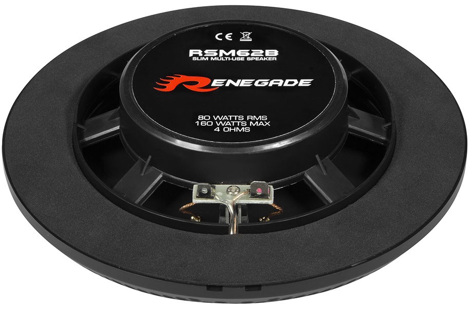 Говорителите Renegade от серията RSM са устойчиви на влага и са много тънки (монтажна дълбочина само 25 мм) и подходящи за места с ограничено пространство (напр. за окачени тавани от гипсокартон). Говорителите Renegade RSM са подходящи също за лодки, бани, тоалетни в ресторанти, външни тераси, градински заведения, беседки и т.н. Те са високоустойчиви на пръски вода и имат корпус, изработен от втвърден пластмас. Вграденият високоговорител с майларова мембрана има диаметър 26 мм. В комплекта ще намерите 2 броя говорители.Основни характеристики