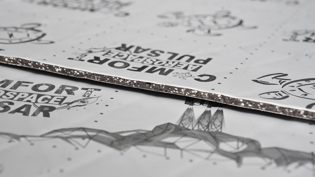 Comfortmat Pulsar е универсален виброакустичен материал от новата серия Aerospace, която комбинира ефективни анти-вибрационни свойства с напреднала звукоизолация. Тази комбинация в един слой значително опростява приложението и носи висок ефект с минимално допълнително тегло. Pulsar има дебелина 5 mm и достига акустичен загубен коефициент (MLF) 0,45, което съответства на върховите анти-вибрационни материали. Използването на напреднал виброакустичен слой със запенени гранули осигурява висока ефективност без необходимост от масивно натоварване на каросерията, което го прави идеално решение за зони със средно до високо ниво на вибрационно и шумово натоварване — типично врати, покрив, под на багажното отделение или калници. Pulsar също така значително намалява резонансите на ламарините и благодарение на високата си адхезионна якост около 15 N/cm остава здраво прилепнал дори при тежки условия. Повърхностната алуминиева фолиа Scale One осигурява размерна стабилност, защитава от повреди и увеличава предаването на демпфиращата енергия. Площната маса 4 kg/m², комбинирана с останалите материали от серията Aerospace, представлява идеален избор за електромобили, спортни автомобили или всякакви приложения, където ниското тегло е едновременно условие и предимство.