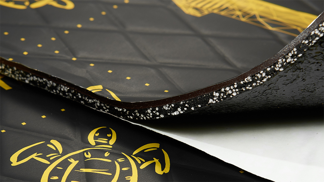 Повърхностен слой с матово нехлъзгащо покритие, увеличава размерната стабилност, предаването на демпфиращата енергия и защитава материала от механични повреди.