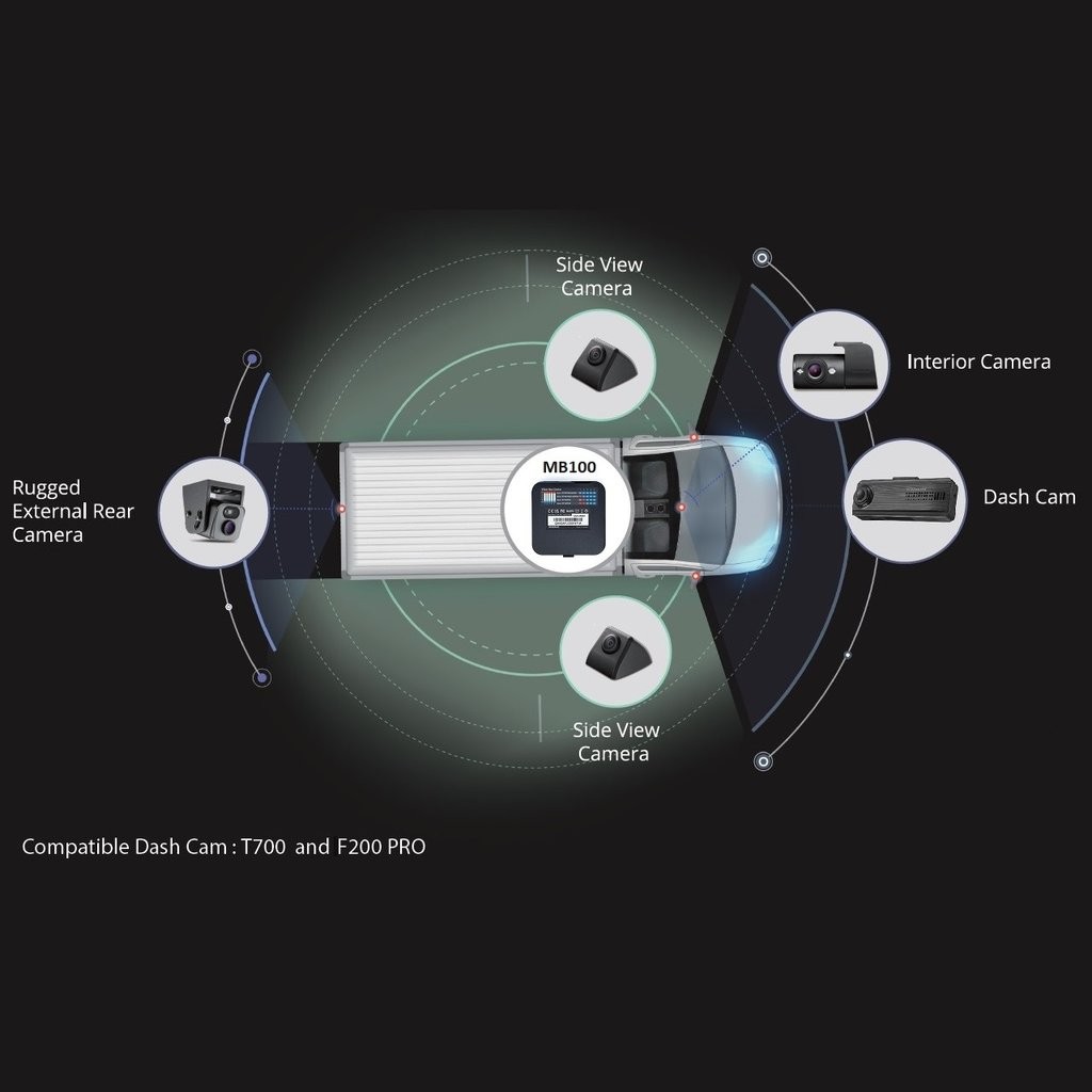 Thinkware MB100 е подходящ избор за клиенти, които искат да разширят камерната система с повече гледни точки и да получат по-комплексен надзор над интериора и околността на автомобила. Модулът поддържа захранване 12 V и 24 V, е оборудван с четири входа AV-IN за допълнителни камери и един изход AV-OUT за свързване към главната камера. Благодарение на това представлява практичен аксесоар за по-натоварени инсталации, където е необходимо да се покрият повече пространства с едно записващо решение.