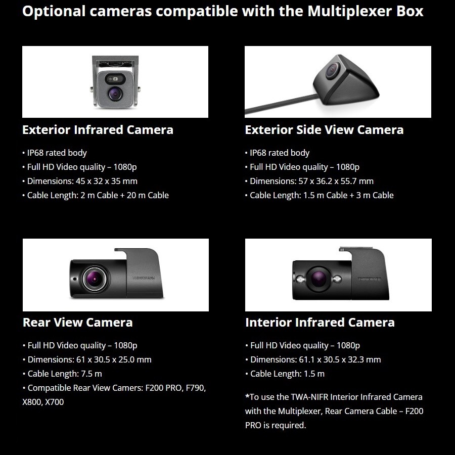 - Kompatibilní s hlavní kamerou Thinkware F200PRO a T700.