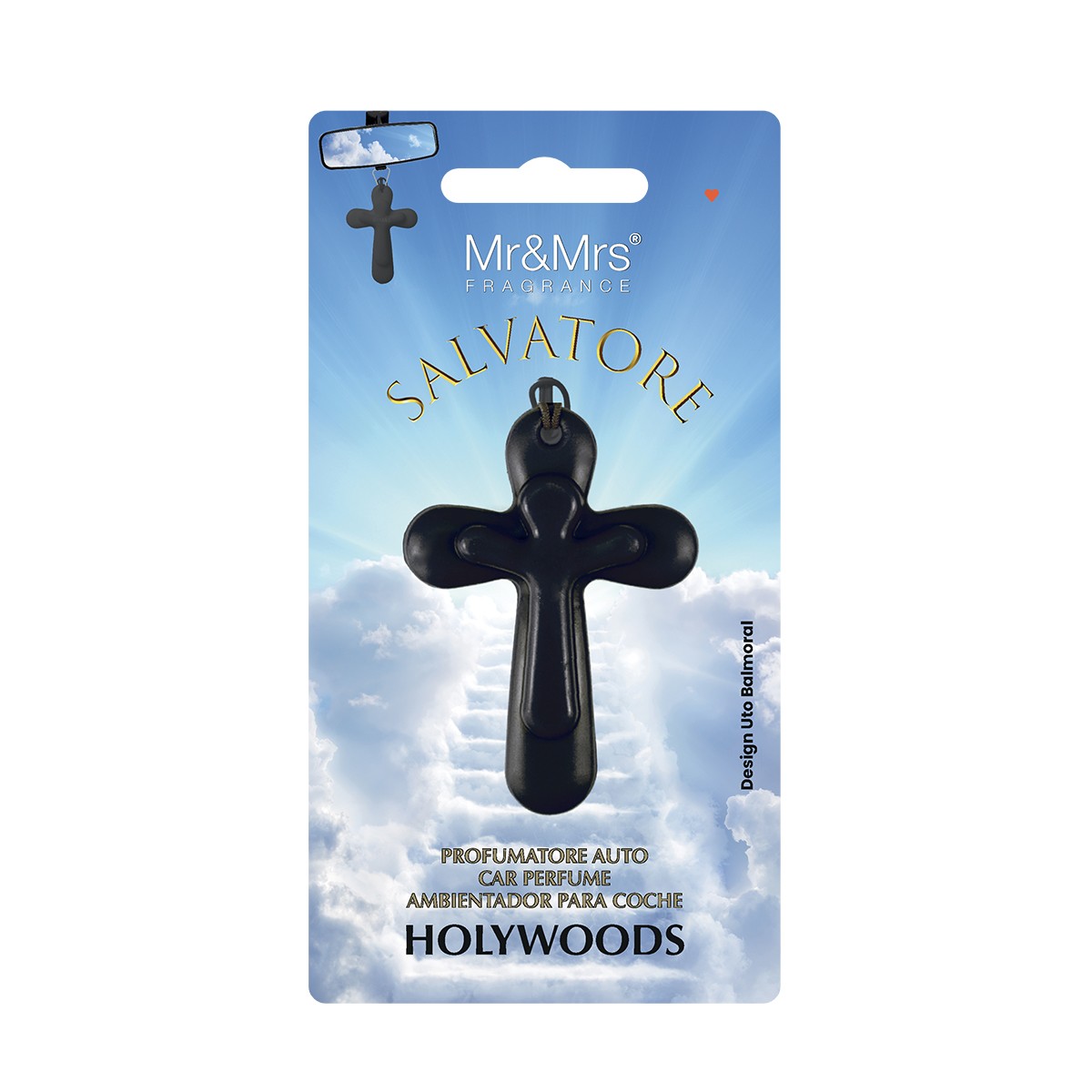 Salvatore je první osvěžovač vzduchu do auta ve tvaru moderního kříže, navržený italským designérem Uto Balmoralem. Jeho minimalistický a elegantní vzhled v bílé barvě přináší do interiéru vozu nádech spirituality a stylu. Ideální jako stylový a originální dárek pro každého řidiče, který ocení kombinaci designu a příjemné vůně.