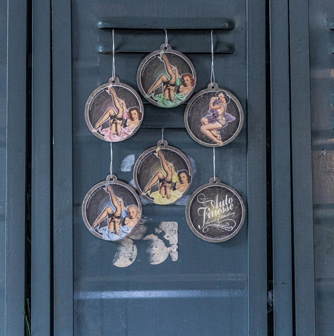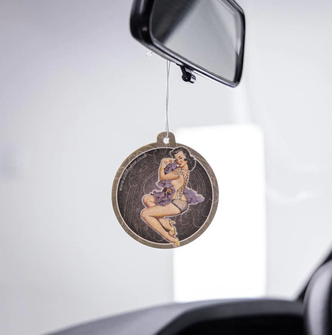 Оригинален освежител за въздух Auto Finesse за закачване в интериора на автомобила. Прекрасният аромат на плодова дъвка незабавно създава приятна атмосфера. Висящият освежител Auto Finesse не само мирише чудесно, но и изглежда добре. От едната страна е с логото на марката, а от другата — ретро портрет на пленителна жена.