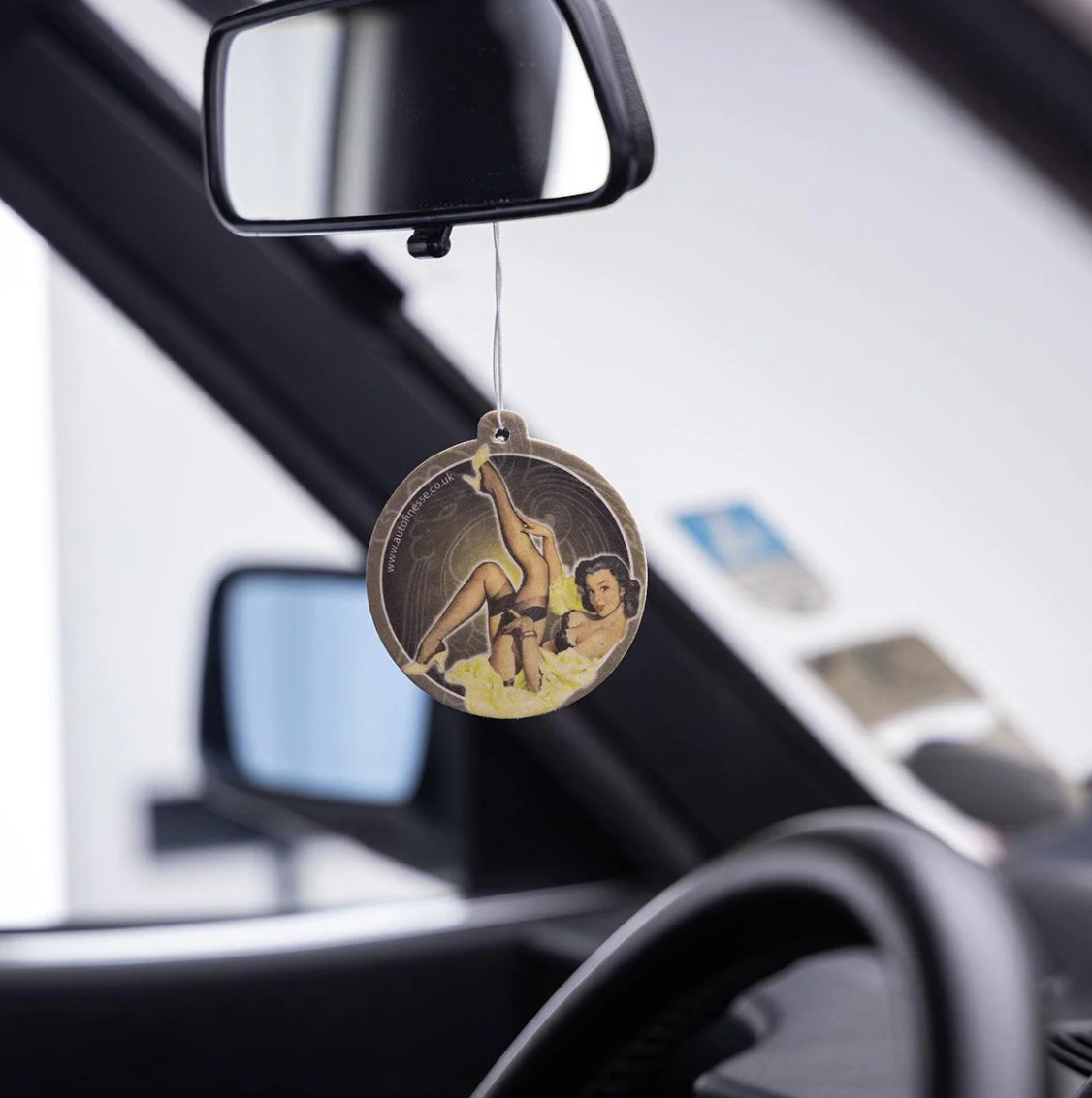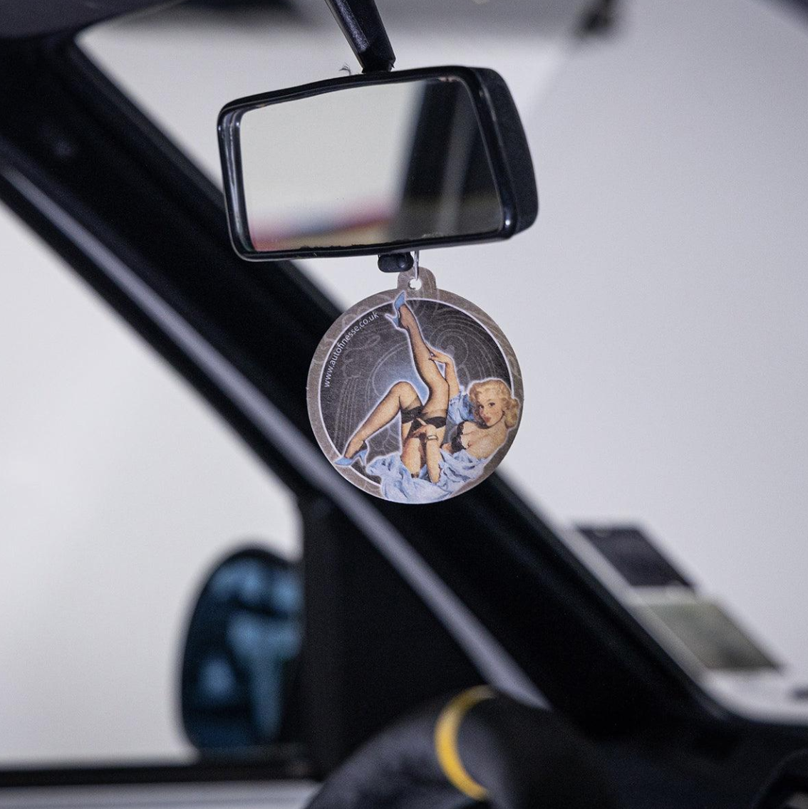 Оригинален освежител за въздух Auto Finesse за закачване в интериора. Прекрасният аромат на кокос незабавно създава приятна атмосфера. Висящият освежител Auto Finesse не само мирише чудесно, но и изглежда добре. От едната страна е с логото на марката, а от другата — ретро портрет на пленителна жена.