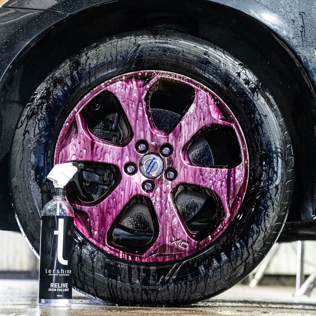 Tershine Relive - Iron Fallout е почистващ препарат за джанти и лак от полепнала ръжда с невероятна ефективност, който за няколко минути разтваря цялата полепнала ръжда от лака и джантите. Средството е pH неутрално и без киселини, което означава, че работите с щадящ препарат, който може да се използва на почти всички повърхности, включително пластмаси и метали или на полиранa повърхност. Има ниска вискозност, което позволява продуктът да се нанася възможно най-равномерно върху повърхността и така да се постигне равномерно отстраняване на спирачния прах и полепналата ръжда. Също така притежава отлични почистващи свойства и може едновременно леко да отстрани обичайните замърсявания. Дори може да премахне остатъци от насекоми от предната част на превозното средство. Когато продуктът е готов за изплакване, цветовете му се променят на лилаво, обикновено това отнема 1 до 3 минути след нанасяне.
