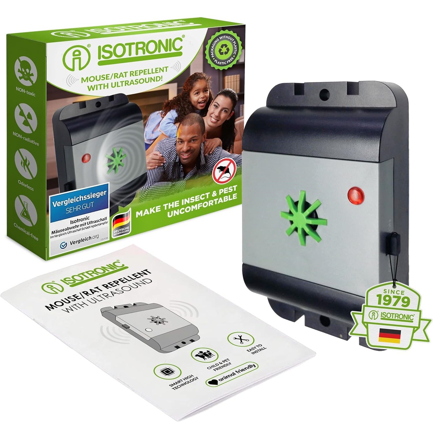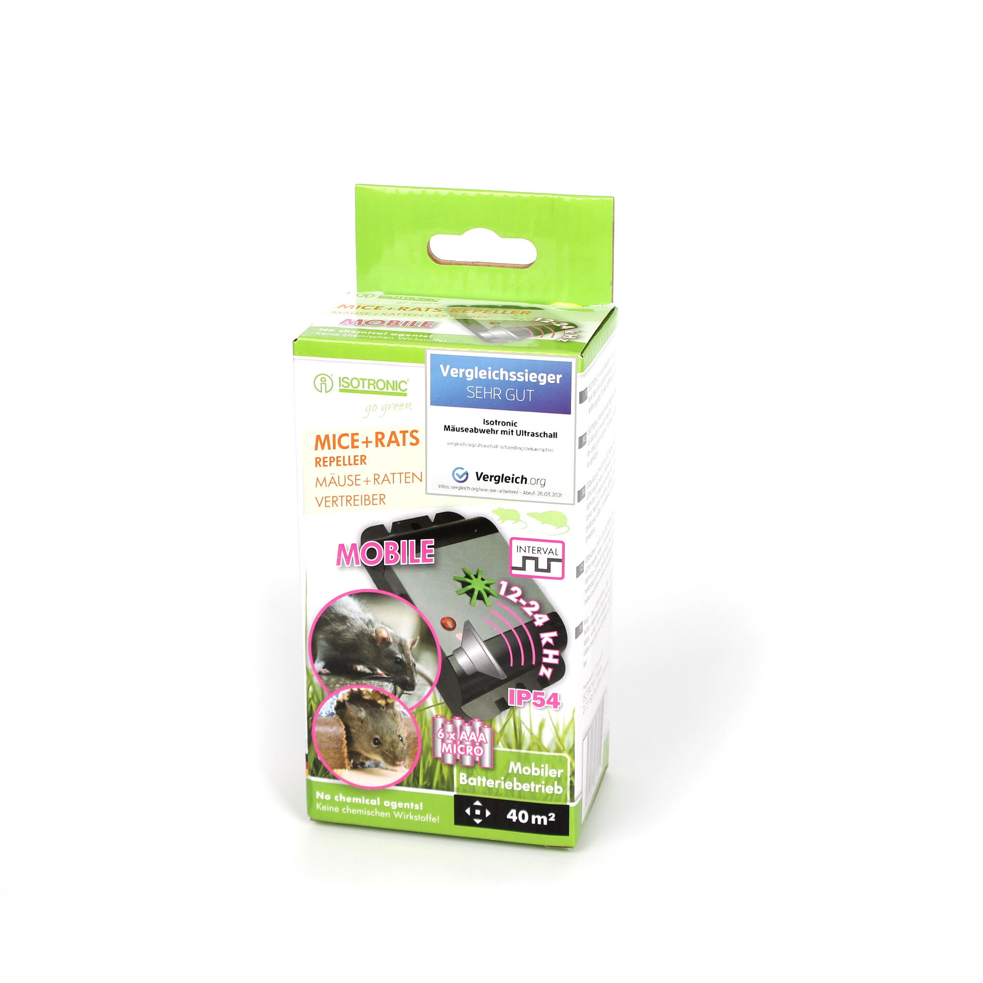 Отблъсквачите Isotronic представляват надеждно и щадящо решение за защита на превозни средства, домове или гаражи от нежелани посетители, като куни, мишки, плъхове или други вредители. Тези електронни отблъсквачи използват ултразвукови сигнали или пулсово напрежение, които са неприятни за животните, но напълно безопасни за човека. В асортимента ще намерите компактни модели, предназначени за монтаж в двигателното отделение, както и универсални устройства за използване вътре в сгради. Отблъсквачите Isotronic са известни с дълъг живот, ниска консумация и лесен монтаж. Защитете автомобила или имуществото си от повреди на кабели или изолация. С марката Isotronic получавате тих, но много ефективен пазител.