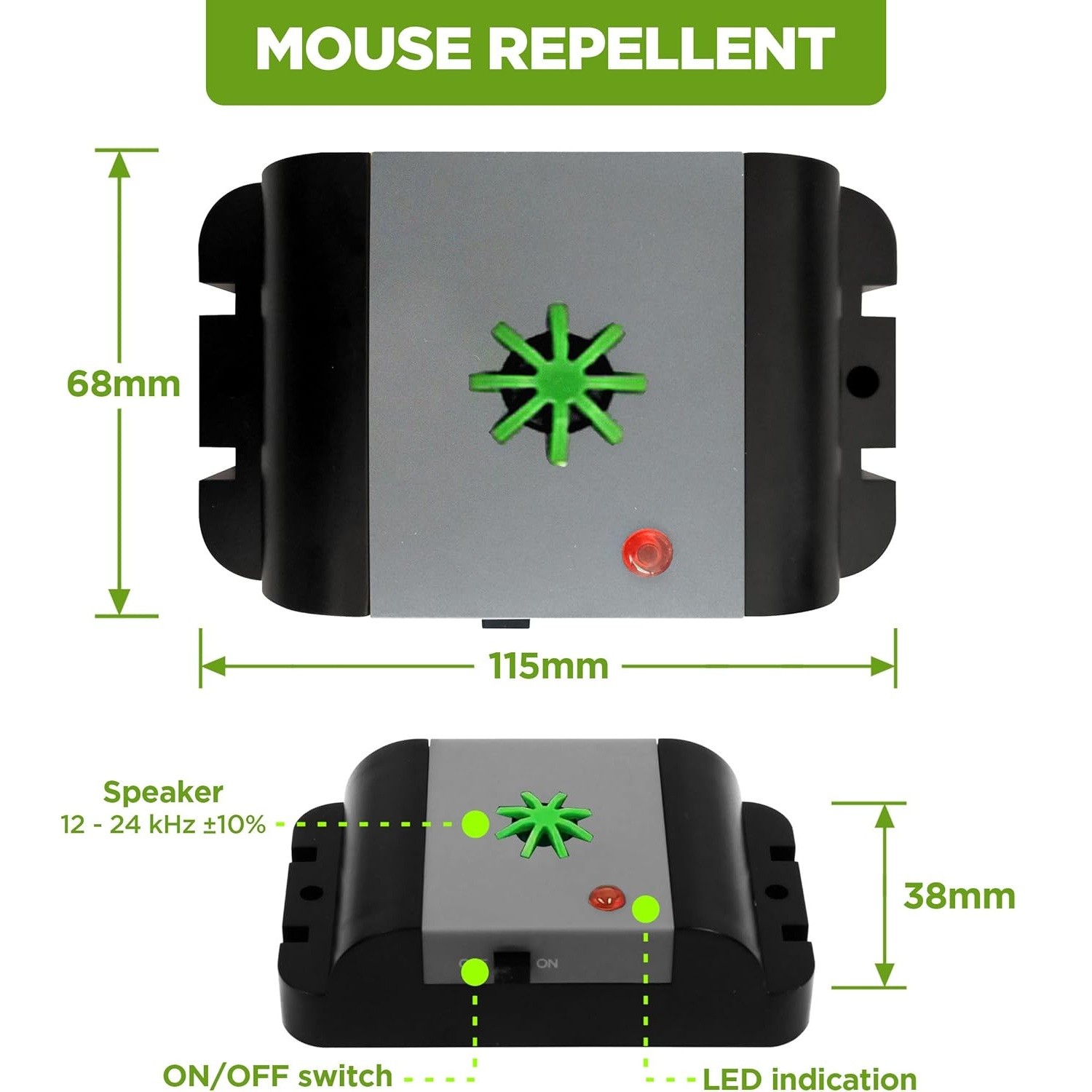 Универсален отблъсквач на гризачи. Устройството излъчва високочестотни звуци на 25-секундни интервали. M632 е идеален за превантивно прогонване на гризачи, за защита на вашия дом, гараж, таванско помещение или външно пространство. Устройството не изисква сложни връзки, тъй като се захранва от батерии (включени в комплекта). Интегрираната Q-технология гарантира постоянен интервален режим и стабилно излъчване.