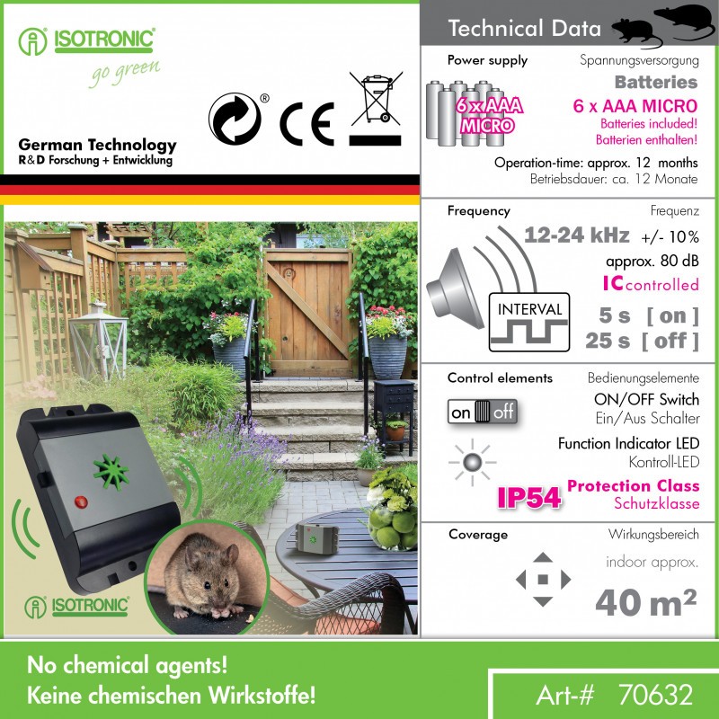 Високочестотен отблъсквач на гризачи на батерии Isotronic M632