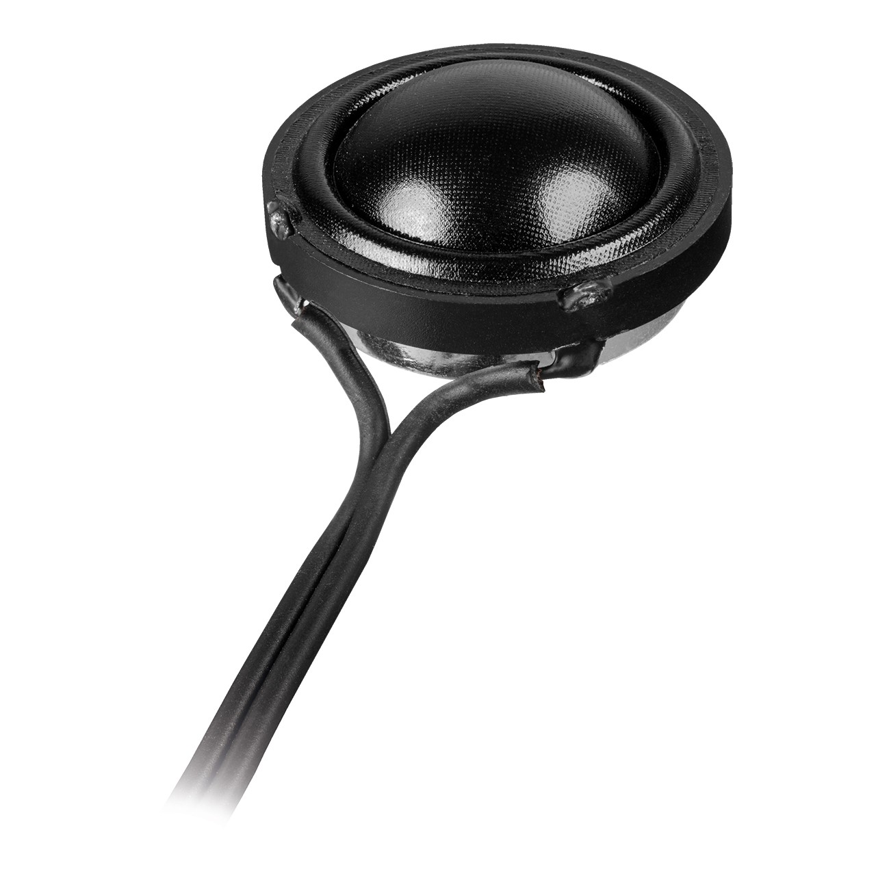- 1” / 25 mm премиум високочестотен говорител с покрита копринена куполна мембрана за прецизен високочестотен отговор с най-фини детайли и естествено възпроизвеждане на звука.