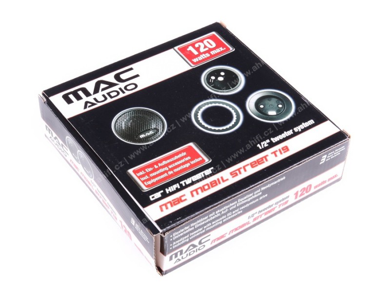 Mac Mobil Street T19 са самостоятелни високочестотни говорители с диаметър на купола 13 mm. Те възпроизвеждат пространствени и прозрачни горни честоти. Включено е универсално монтажно оборудване, както и монтажни кутии за лесен монтаж в автомобила. Отлично съотношение цена/качество на звука.| Каталожен номер | STREET T19 |