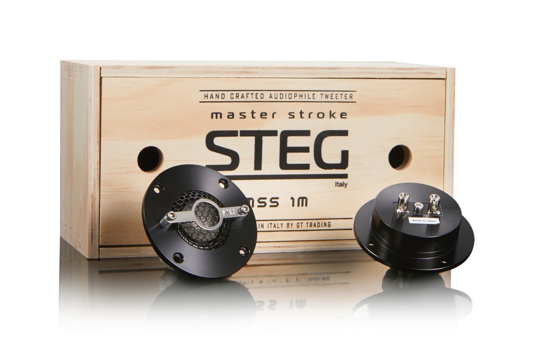 Steg представя обновената втора най-висока серия говорители Master Stroke, които ще впечатлят слушателите със своя верен и прецизен звук и разширен честотен обхват. Трисистемният комплект, проектиран и произведен без компромиси, привлича вниманието не само със звука, но и с подбрани благородни материали, отлична изработка и първокласен дизайн. Ръчно изработените компоненти преминаха дълъг развоен процес, щателни слушателски проверки и тестове на симулатори при екстремни натоварвания с цел постигане на говорителна система, която ще зарадва аудиофилите. В предлагането ще намерите високочестотни, средночестотни и басови говорители, които заедно формират перфектно съгласуван комплект. Красивото дървено опаковане само подчертава качествата на тези говорители.