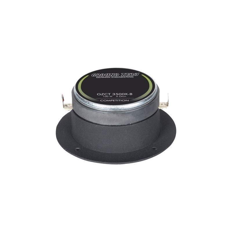 Competition GZCT 3500X-B е висококачествен компресионен високочестотен говорител от Ground Zero. Този модел е оборудван с 25 mm компресионен високочестотен говорител с алуминиева куполна мембрана и ъгъл на излъчване 40°. Сред забележителните характеристики на устройството са отлят алуминиев корпус, 25 mm CCA бобина, феритен магнит и паяни терминали. С монтажна дълбочина 40 mm и импеданс 4 ома GZCT 3500X-B е отличен избор за всеки, който търси първокласни звукови решения.Основни специфики на серията Ground Zero Competition