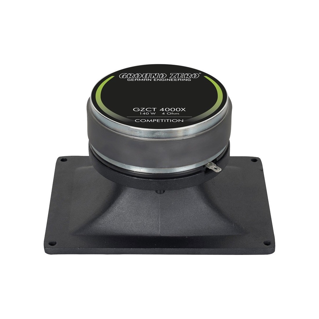 Открийте Competition GZCT 4000X Horn Tweeter от Ground Zero, който се отличава със своите впечатляващи технически характеристики. Със своя 44,5 mm компресионен високочестотен говорител и алуминиев купол предлага отличен ъгъл на излъчване 60 x 90°. Високочестотният говорител се характеризира с издържлива конструкция благодарение на CCA гласова бобина, феритен магнит и корпус от леян алуминий. Терминал за запояване осигурява лесен монтаж, а опаковката съдържа по един брой. Като мощен и ефективен високоговорител, Competition GZCT 4000X предлага несравнимо представяне и качество, с което ще постигнете успех.Основни специфики на серията Ground Zero Competition