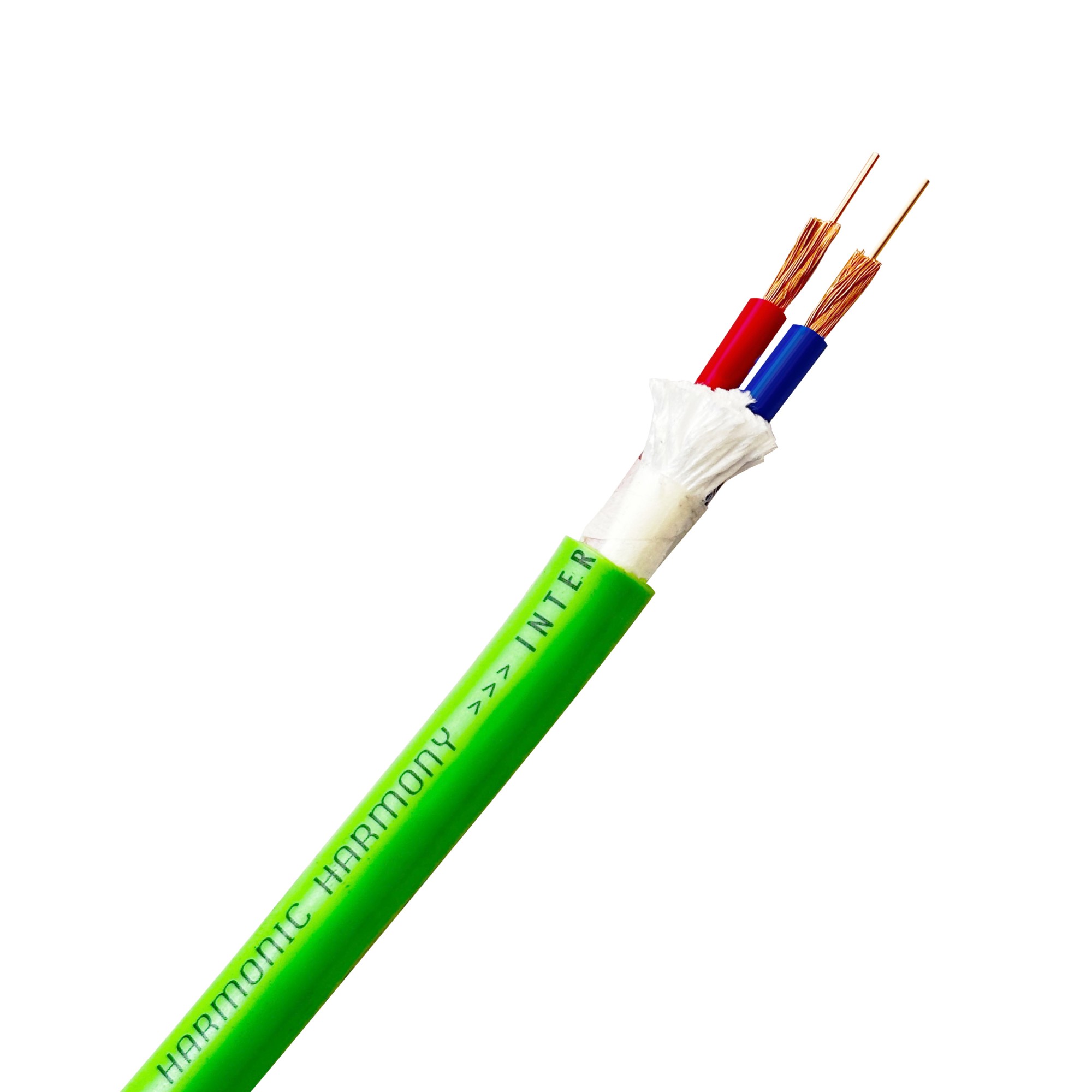 Първокласен високоговорителен кабел Harmonic Harmony от втората най-висока моделна серия Interlude. В сравнение с кабела от базовата серия Acapella, високоговорителният кабел Interlude разполага с тройно екраниране. Първо отделните кабели са защитени с PVC обвивка, следва памучна оплетка и след това отново здрава PVC кръгла форма с диаметър 8,5 mm. Това осигурява перфектна защита на кабела от повреди и особено от външни смущения. По-голямо е и сечението на кабела, конкретно 2 x 3,31 mm², което е идеално за качествени и много мощни високоговорители и субуфъри. Стандартно е и изработването от многожилни нишки от висококачествена безкислородна (OFC) мед за минимизиране на изкривяванията и оцветяването на звука.