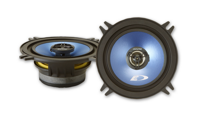 | Тип на високоговорителитеКоаксиални високоговорители: Коаксиалните високоговорители се характеризират с конструкция, наречена всичко в едно. Високочестотният и среднобасовият говорител са в един и същ кош. Предимството е по-лесен монтаж, но поради свързването или близостта на честотните диапазони в един говорител обикновено се понижава качеството на звука. Обикновено в центъра на среднобасовия говорител се намира високочестотният говорител, чиито звукова бобина работи във втората въздушна междина на общия магнитен кръг. Коаксиален говорител с три честотни диапазона се състои от среднобасов говорител, отпред на специален носач е поставен средночестотният говорител и отделен високочестотен. Компонентни високоговорители: Компонентните високоговорители се отличават с разделянето на отделни честотни диапазони: високочестотен + среднобасов + евентуално басов диапазон. Отделните говорители могат да бъдат разположени напълно отделно, което води до по-добро звуково и акустично представяне. В огромното мнозинство от случаите при компонентните високоговорители се доставя и външна кросоувърна мрежа, която разделя високите, средните/среднобасовите и при системи с три честотни диапазона и басовите честоти, както и позволява настройване на нивото в децибели на високочестотния говорител (напр. +2 dB, 0 dB, -2 dB), стръмността (напр. 6 dB/октава, 12 dB/октава) или активно/bi-amp свързване. | Коаксиални двулентови |