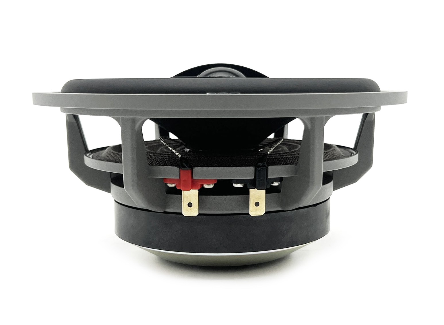 Коаксиалните говорители от серията Quattromila се отличават с почти идентични параметри и звукови характеристики като компонентната система на тази серия и с право заемат позиция сред най-качествените коаксиални говорители на съвременния пазар. Говорителите веднага впечатляват със своя здрав дизайн, който подсказва потенциала на тези говорители. В центъра им стои висококачествен магнит (Y-35) с предимензиирани размери, който гарантира излишък от енергия и лесно възпроизвеждащи се върхове на екскурзията, при които бобината работи в магнитното поле много тихо. Полярната плоча от стомана с изключително ниско съдържание на въглерод е студено кована от един цял къс и обработена на CNC чрез FEM технология, което позволява постигане на перфектна геометрия. Това създава допълнителна концентрация на магнитната сила точно преди подвижната бобина, която фокусира магнитната сила там, където е необходимо. Този вид производствен процес гарантира перфектна плоскост, така че плочата лежи в една равнина с магнита, без да се намалява решаващият магнитен поток. Кошът на говорителя е изработен от под налягане леена алуминиева сплав. Тази конструкция предлага перфектна твърдост и минимално съпротивление на движение на въздушния поток, без да се променя качеството на звука. Отливането на този алуминиев кош се извършва според строги процедури, които осигуряват съответствие с регулаторните спецификации и помагат за поддържане на постоянството на качеството на отливките. Здравата алуминиева подвижна бобина с медено покритие издържа много висока мощност и едновременно възпроизвежда музика с изключителна реализъм и висока динамика. Бобината от алуминиев проводник с медно плакиране е много лека и със отлична топлоразсейвателна способност. Мембраната от дълговлакнеста целулоза с специална външна обработка представлява перфектна комбинация от лекота, твърдост и вътрешно демпфиране. Външният окачващ ръб от мека нитрилна гума е устойчив на UV и не се влияе от температурни промени, което гарантира дългосрочно запазване на отличните акустични характеристики на този говорител. Специалната конструкция на ръбовете осигурява перфектно и свободно движение напред и назад. В среднобаса е вграден 25 mm високочестотен говорител от серията Quattromila с копринен купол, който осигурява вярно възпроизвеждане на високите честоти. Налични са и опционални решетки за говорителя от стомана в матово черно покритие.