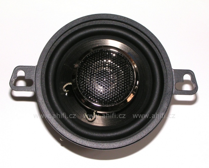 | Тип на високоговорителитеКоаксиални високоговорители: Коаксиалните високоговорители се характеризират с конструкция, наречена всичко в едно. Високочестотният и среднобасовият говорител са в един и същ кош. Предимството е по-лесен монтаж, но поради свързването или близостта на честотните диапазони в един говорител обикновено се понижава качеството на звука. Обикновено в центъра на среднобасовия говорител се намира високочестотният говорител, чиито звукова бобина работи във втората въздушна междина на общия магнитен кръг. Коаксиален говорител с три честотни диапазона се състои от среднобасов говорител, отпред на специален носач е поставен средночестотният говорител и отделен високочестотен. Компонентни високоговорители: Компонентните високоговорители се отличават с разделянето на отделни честотни диапазони: високочестотен + среднобасов + евентуално басов диапазон. Отделните говорители могат да бъдат разположени напълно отделно, което води до по-добро звуково и акустично представяне. В огромното мнозинство от случаите при компонентните високоговорители се доставя и външна кросоувърна мрежа, която разделя високите, средните/среднобасовите и при системи с три честотни диапазона и басовите честоти, както и позволява настройване на нивото в децибели на високочестотния говорител (напр. +2 dB, 0 dB, -2 dB), стръмността (напр. 6 dB/октава, 12 dB/октава) или активно/bi-amp свързване. | коаксиални 2-посочни |