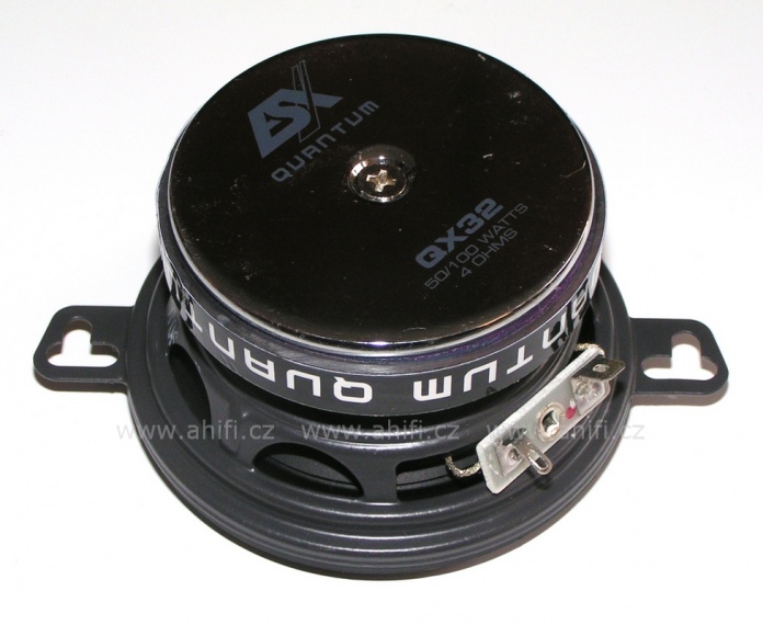 | Диаметър на среднебасовия говорителДиаметърът на говорителя се посочва като диаметър на целия говорител, без да се включват монтажните закрепвания, при които при по-малките говорители (87, 100, 130 mm) закрепванията може да стърчат допълнително. Някои говорители са овални и там размерът се дава в инчове, винаги от най-късата към най-дългата страна. Един инч е приблизително 2,5 cm. | 87 mm |