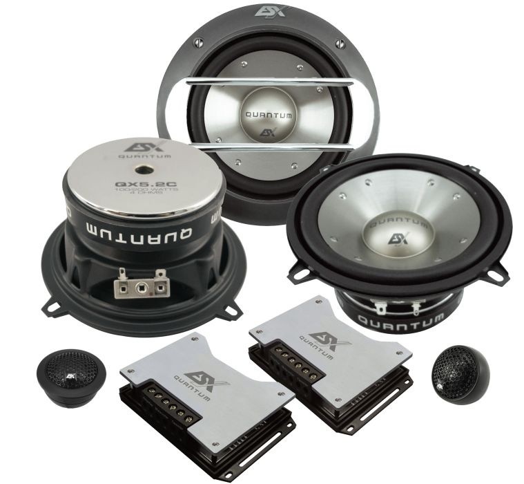 | Тип на високоговорителитеКоаксиални високоговорители: Коаксиалните високоговорители се характеризират с конструкция, наречена всичко в едно. Високочестотният и среднобасовият говорител са в един и същ кош. Предимството е по-лесен монтаж, но поради свързването или близостта на честотните диапазони в един говорител обикновено се понижава качеството на звука. Обикновено в центъра на среднобасовия говорител се намира високочестотният говорител, чиито звукова бобина работи във втората въздушна междина на общия магнитен кръг. Коаксиален говорител с три честотни диапазона се състои от среднобасов говорител, отпред на специален носач е поставен средночестотният говорител и отделен високочестотен. Компонентни високоговорители: Компонентните високоговорители се отличават с разделянето на отделни честотни диапазони: високочестотен + среднобасов + евентуално басов диапазон. Отделните говорители могат да бъдат разположени напълно отделно, което води до по-добро звуково и акустично представяне. В огромното мнозинство от случаите при компонентните високоговорители се доставя и външна кросоувърна мрежа, която разделя високите, средните/среднобасовите и при системи с три честотни диапазона и басовите честоти, както и позволява настройване на нивото в децибели на високочестотния говорител (напр. +2 dB, 0 dB, -2 dB), стръмността (напр. 6 dB/октава, 12 dB/октава) или активно/bi-amp свързване. | компонентни 2-посни |
