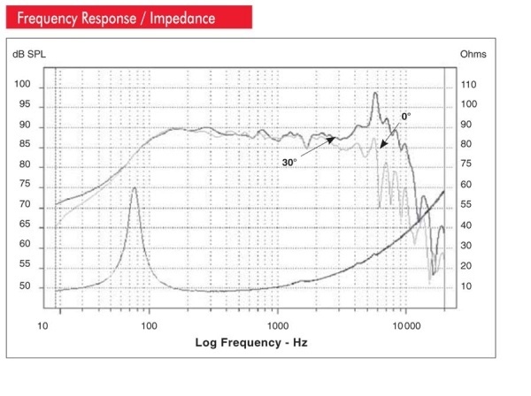 | Честотен обхватСпособността на говорителите да възпроизвеждат сигнал от най-ниската до най-високата честота, т.е. способността на говорителя да възпроизвежда вярно звука в определен честотен диапазон. Технически: В областта на честотите от 40 до 16 000 Hz се намира преобладаващата част от основните и аликвотните (хармоничните) тонове на всички музикални инструменти. Интересува ни какъв е ходът на излъчвания акустичен натиск в този честотен обхват при подаване на константна мощност към тонколонната система. На този ход му казваме честотна характеристика, която ни дава нивото на излъчвания акустичен натиск в децибели (dB) в зависимост от честотата. Най-изразително честотната характеристика на говорител или тонколонна система може да се представи чрез графика. Обикновено честотната характеристика се дава чрез посочване на максималното отклонение на акустичния натиск в дадения честотен обхват, напр. 50 до 15 000 Hz ± 6 dB. Тъй като честотната характеристика на говорителите и системите обикновено е значително неравномерна, някои производители по престижни причини не посочват в своите каталози дори тази максимална толерантност на акустичния натиск в децибели. Такъв скуден показател за съжаление е безполезен. Каква полза е производителят да посочва тонколонна система с честотен обхват 30 до 20 000 Hz, ако се притеснява да посочи максималната неравномерност на акустичния натиск в този обхват, тъй като тя може да бъде напр. ± 20 dB. Неравномерността или вълничността на честотния ход при добри тонколонни системи за качествено възпроизвеждане на музика не трябва да надвишава в обхвата 80 до 12 000 Hz ± 3 dB и в обхвата 40 до 16 000 Hz ± 6 dB. По-голямата неравномерност вече оскъпява или подчертава определени тонови области, което може да причини чуваеми или дори дразнещи изкривявания. Променя се също делът между основните тонове и по-високите хармоници, с което се променя тембърът на звука и отделните музикални инструменти и цялото музикално звучене стават неестествени. | 65 - 20000 Hz |