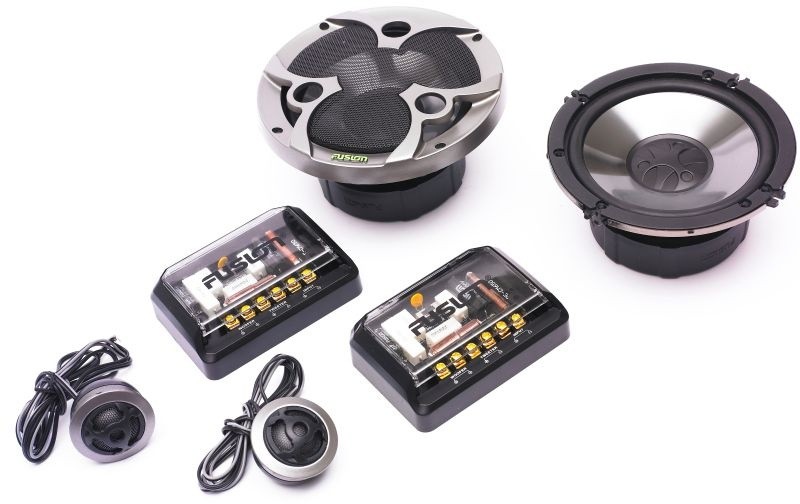 | Тип на високоговорителитеКоаксиални високоговорители: Коаксиалните високоговорители се характеризират с конструкция, наречена всичко в едно. Високочестотният и среднобасовият говорител са в един и същ кош. Предимството е по-лесен монтаж, но поради свързването или близостта на честотните диапазони в един говорител обикновено се понижава качеството на звука. Обикновено в центъра на среднобасовия говорител се намира високочестотният говорител, чиито звукова бобина работи във втората въздушна междина на общия магнитен кръг. Коаксиален говорител с три честотни диапазона се състои от среднобасов говорител, отпред на специален носач е поставен средночестотният говорител и отделен високочестотен. Компонентни високоговорители: Компонентните високоговорители се отличават с разделянето на отделни честотни диапазони: високочестотен + среднобасов + евентуално басов диапазон. Отделните говорители могат да бъдат разположени напълно отделно, което води до по-добро звуково и акустично представяне. В огромното мнозинство от случаите при компонентните високоговорители се доставя и външна кросоувърна мрежа, която разделя високите, средните/среднобасовите и при системи с три честотни диапазона и басовите честоти, както и позволява настройване на нивото в децибели на високочестотния говорител (напр. +2 dB, 0 dB, -2 dB), стръмността (напр. 6 dB/октава, 12 dB/октава) или активно/bi-amp свързване. | компонентни двулентови |