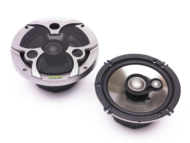 | Тип на високоговорителитеКоаксиални високоговорители: Коаксиалните високоговорители се характеризират с конструкция, наречена всичко в едно. Високочестотният и среднобасовият говорител са в един и същ кош. Предимството е по-лесен монтаж, но поради свързването или близостта на честотните диапазони в един говорител обикновено се понижава качеството на звука. Обикновено в центъра на среднобасовия говорител се намира високочестотният говорител, чиито звукова бобина работи във втората въздушна междина на общия магнитен кръг. Коаксиален говорител с три честотни диапазона се състои от среднобасов говорител, отпред на специален носач е поставен средночестотният говорител и отделен високочестотен. Компонентни високоговорители: Компонентните високоговорители се отличават с разделянето на отделни честотни диапазони: високочестотен + среднобасов + евентуално басов диапазон. Отделните говорители могат да бъдат разположени напълно отделно, което води до по-добро звуково и акустично представяне. В огромното мнозинство от случаите при компонентните високоговорители се доставя и външна кросоувърна мрежа, която разделя високите, средните/среднобасовите и при системи с три честотни диапазона и басовите честоти, както и позволява настройване на нивото в децибели на високочестотния говорител (напр. +2 dB, 0 dB, -2 dB), стръмността (напр. 6 dB/октава, 12 dB/октава) или активно/bi-amp свързване. | коаксиални 3-пътни |