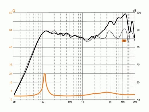 | Честотен обхватСпособността на говорителите да възпроизвеждат сигнал от най-ниската до най-високата честота, т.е. способността на говорителя да възпроизвежда вярно звука в определен честотен диапазон. Технически: В областта на честотите от 40 до 16 000 Hz се намира преобладаващата част от основните и аликвотните (хармоничните) тонове на всички музикални инструменти. Интересува ни какъв е ходът на излъчвания акустичен натиск в този честотен обхват при подаване на константна мощност към тонколонната система. На този ход му казваме честотна характеристика, която ни дава нивото на излъчвания акустичен натиск в децибели (dB) в зависимост от честотата. Най-изразително честотната характеристика на говорител или тонколонна система може да се представи чрез графика. Обикновено честотната характеристика се дава чрез посочване на максималното отклонение на акустичния натиск в дадения честотен обхват, напр. 50 до 15 000 Hz ± 6 dB. Тъй като честотната характеристика на говорителите и системите обикновено е значително неравномерна, някои производители по престижни причини не посочват в своите каталози дори тази максимална толерантност на акустичния натиск в децибели. Такъв скуден показател за съжаление е безполезен. Каква полза е производителят да посочва тонколонна система с честотен обхват 30 до 20 000 Hz, ако се притеснява да посочи максималната неравномерност на акустичния натиск в този обхват, тъй като тя може да бъде напр. ± 20 dB. Неравномерността или вълничността на честотния ход при добри тонколонни системи за качествено възпроизвеждане на музика не трябва да надвишава в обхвата 80 до 12 000 Hz ± 3 dB и в обхвата 40 до 16 000 Hz ± 6 dB. По-голямата неравномерност вече оскъпява или подчертава определени тонови области, което може да причини чуваеми или дори дразнещи изкривявания. Променя се също делът между основните тонове и по-високите хармоници, с което се променя тембърът на звука и отделните музикални инструменти и цялото музикално звучене стават неестествени. | 80 - 23000 Hz |