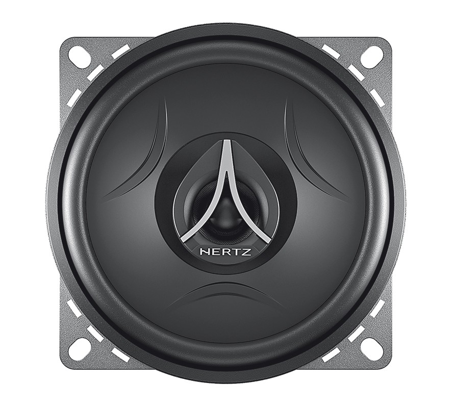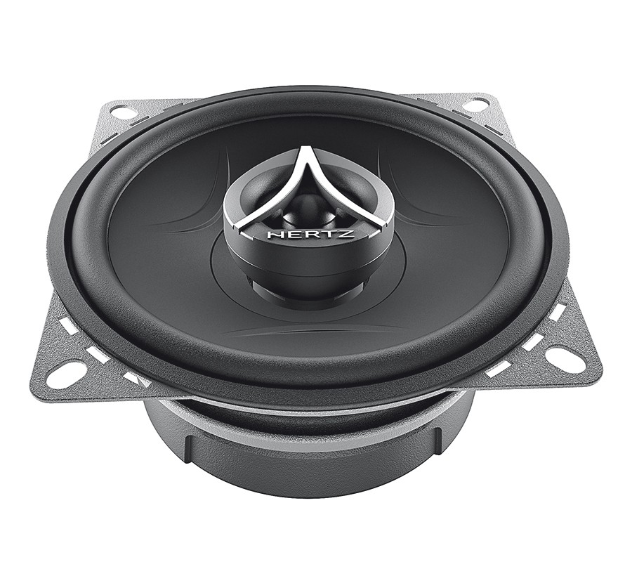 | Тип на високоговорителитеКоаксиални високоговорители: Коаксиалните високоговорители се характеризират с конструкция, наречена всичко в едно. Високочестотният и среднобасовият говорител са в един и същ кош. Предимството е по-лесен монтаж, но поради свързването или близостта на честотните диапазони в един говорител обикновено се понижава качеството на звука. Обикновено в центъра на среднобасовия говорител се намира високочестотният говорител, чиито звукова бобина работи във втората въздушна междина на общия магнитен кръг. Коаксиален говорител с три честотни диапазона се състои от среднобасов говорител, отпред на специален носач е поставен средночестотният говорител и отделен високочестотен. Компонентни високоговорители: Компонентните високоговорители се отличават с разделянето на отделни честотни диапазони: високочестотен + среднобасов + евентуално басов диапазон. Отделните говорители могат да бъдат разположени напълно отделно, което води до по-добро звуково и акустично представяне. В огромното мнозинство от случаите при компонентните високоговорители се доставя и външна кросоувърна мрежа, която разделя високите, средните/среднобасовите и при системи с три честотни диапазона и басовите честоти, както и позволява настройване на нивото в децибели на високочестотния говорител (напр. +2 dB, 0 dB, -2 dB), стръмността (напр. 6 dB/октава, 12 dB/октава) или активно/bi-amp свързване. | Коаксиален двулентов |