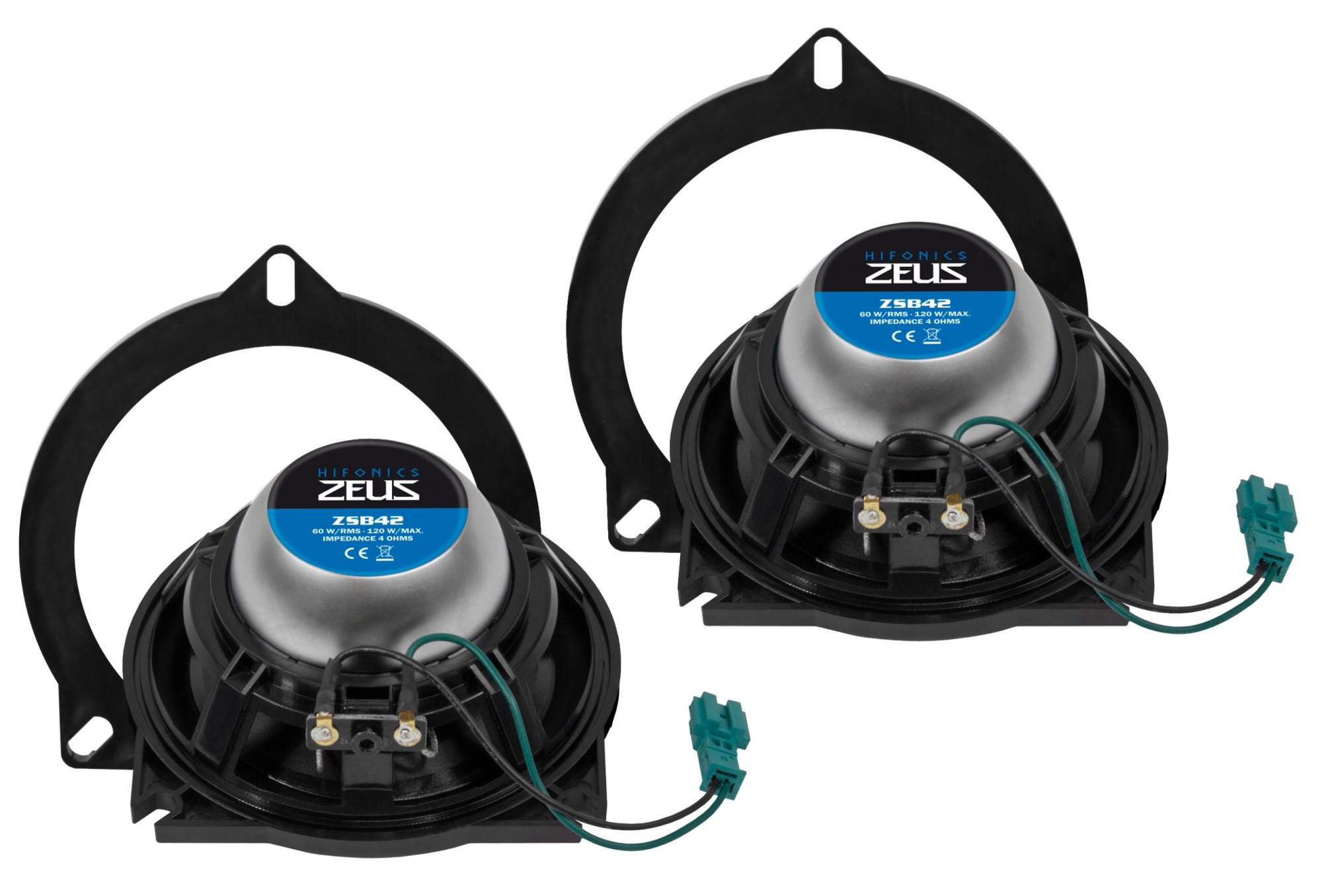 С серията ZEUS ZSB Hifonics за първи път предлага говорители, специфични за автомобили BMW/Mini. Сред специалните предимства на серията ZEUS ZSB са прецизно изработените субуфери. Докато конвенционалните бас говорители често са оборудвани с евтини, но тежки и неефективни феритови магнити, леките модели ZSB8W впечатляват с модерни и много ефективни неодимови магнити. Този тип говорител в комбинация с големи 50 mm подвижни бобини и размерно стабилни мембрани от стъклени влакна осигурява мощни и стегнати басове! Неодимовите магнити са използвани и в перфектно пасващите 10 cm говорители. Те също са леки, ефективни и имат малка монтажна дълбочина. Пълнообхватните говорители са допълнени от фино детайлни неодимови пищялки с копринен купол. Всички адаптери, кабели и инсталационни принадлежности, специфични за автомобила, са част от доставката, което значително опростява Plug&Play монтажа.Основни характеристики