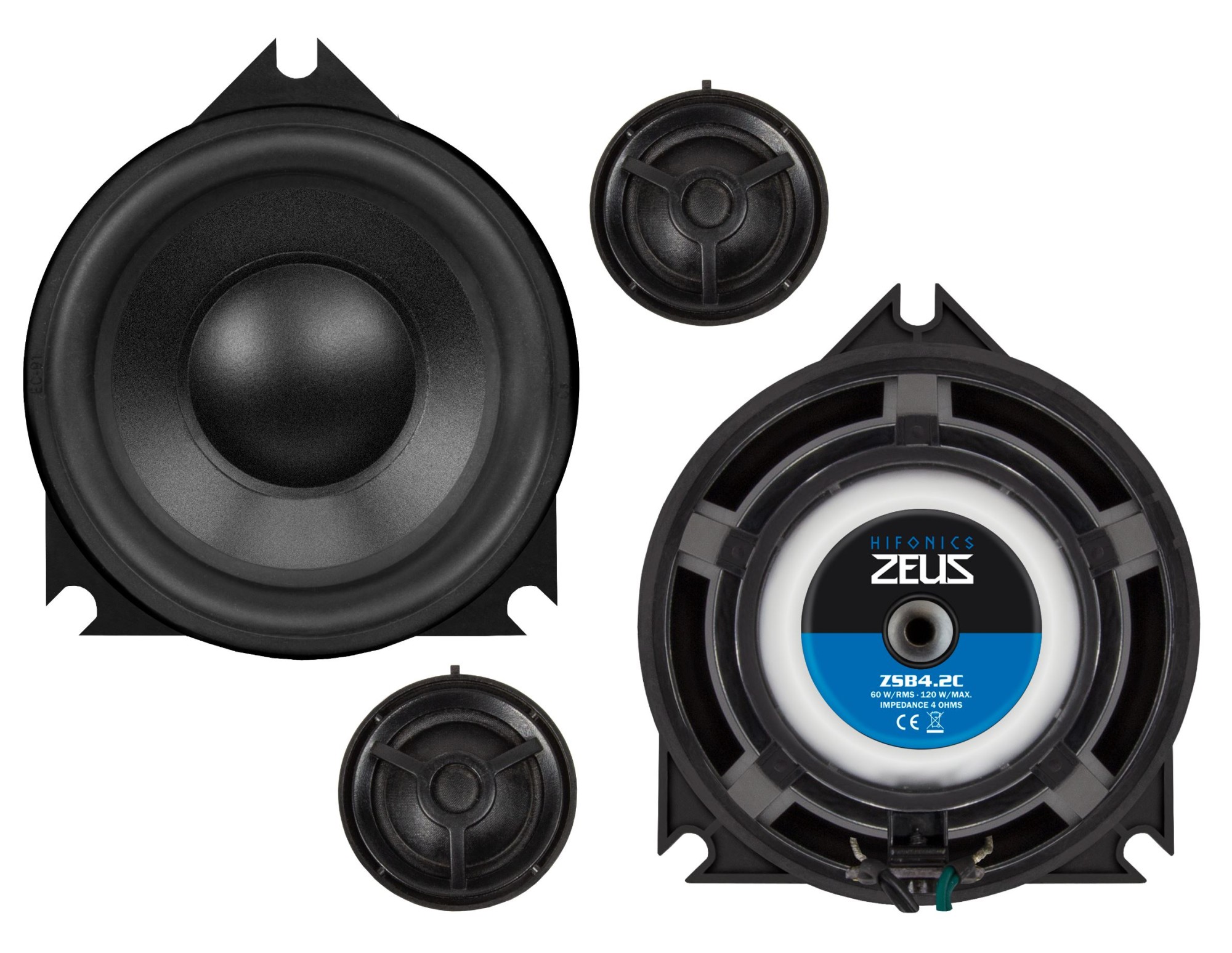 С серията ZEUS ZSB Hifonics за първи път предлага говорители, специфични за автомобили BMW/Mini. Сред специалните предимства на серията ZEUS ZSB са прецизно изработените субуфери. Докато конвенционалните бас говорители често са оборудвани с евтини, но тежки и неефективни феритови магнити, леките модели ZSB8W впечатляват с модерни и много ефективни неодимови магнити. Този тип говорител в комбинация с големи 50 mm подвижни бобини и размерно стабилни мембрани от стъклени влакна осигурява мощни и стегнати басове! Неодимовите магнити са използвани и в перфектно пасващите 10 cm говорители. Те също са леки, ефективни и имат малка монтажна дълбочина. Пълнообхватните говорители са допълнени от фино детайлни неодимови пищялки с копринен купол. Всички адаптери, кабели и инсталационни принадлежности, специфични за автомобила, са част от доставката, което значително опростява Plug&Play монтажа.Основни характеристики