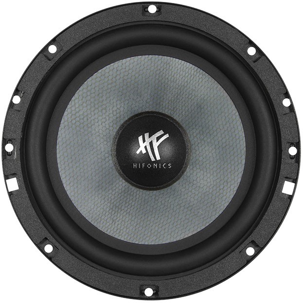 | Тип на високоговорителитеКоаксиални високоговорители: Коаксиалните високоговорители се характеризират с конструкция, наречена всичко в едно. Високочестотният и среднобасовият говорител са в един и същ кош. Предимството е по-лесен монтаж, но поради свързването или близостта на честотните диапазони в един говорител обикновено се понижава качеството на звука. Обикновено в центъра на среднобасовия говорител се намира високочестотният говорител, чиито звукова бобина работи във втората въздушна междина на общия магнитен кръг. Коаксиален говорител с три честотни диапазона се състои от среднобасов говорител, отпред на специален носач е поставен средночестотният говорител и отделен високочестотен. Компонентни високоговорители: Компонентните високоговорители се отличават с разделянето на отделни честотни диапазони: високочестотен + среднобасов + евентуално басов диапазон. Отделните говорители могат да бъдат разположени напълно отделно, което води до по-добро звуково и акустично представяне. В огромното мнозинство от случаите при компонентните високоговорители се доставя и външна кросоувърна мрежа, която разделя високите, средните/среднобасовите и при системи с три честотни диапазона и басовите честоти, както и позволява настройване на нивото в децибели на високочестотния говорител (напр. +2 dB, 0 dB, -2 dB), стръмността (напр. 6 dB/октава, 12 dB/октава) или активно/bi-amp свързване. | Среднобасови |